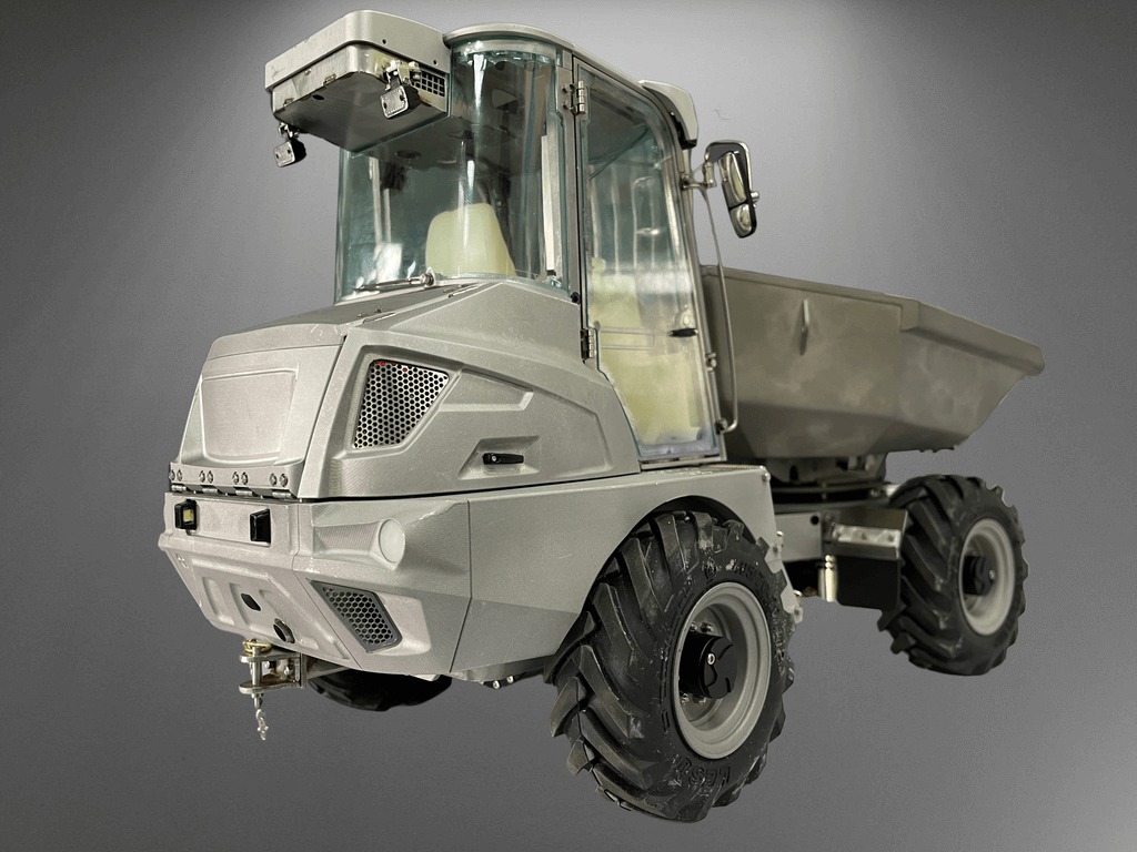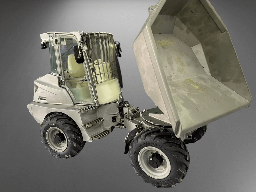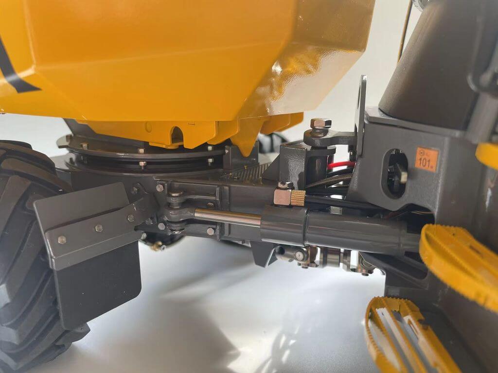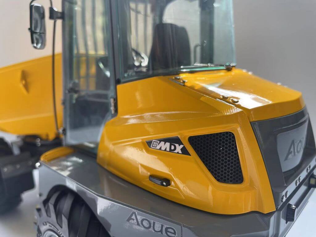 Der Mini-Kipper 6MDX ist bereits mit Beleuchtung, Servos, Regler, Hydraulik und Soundsystem ausgestattet.