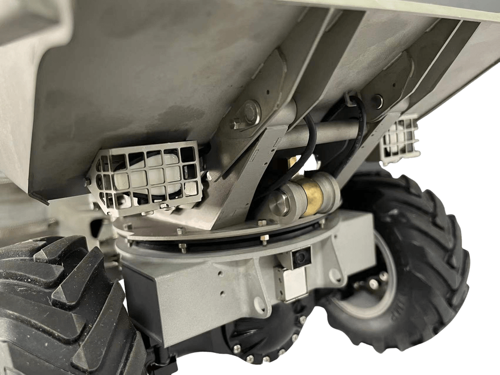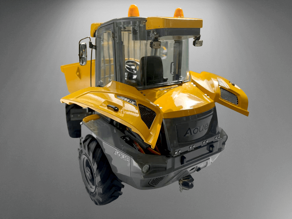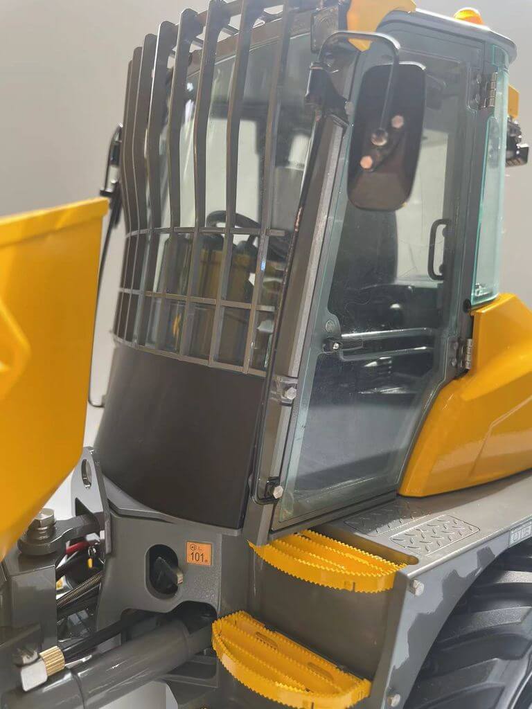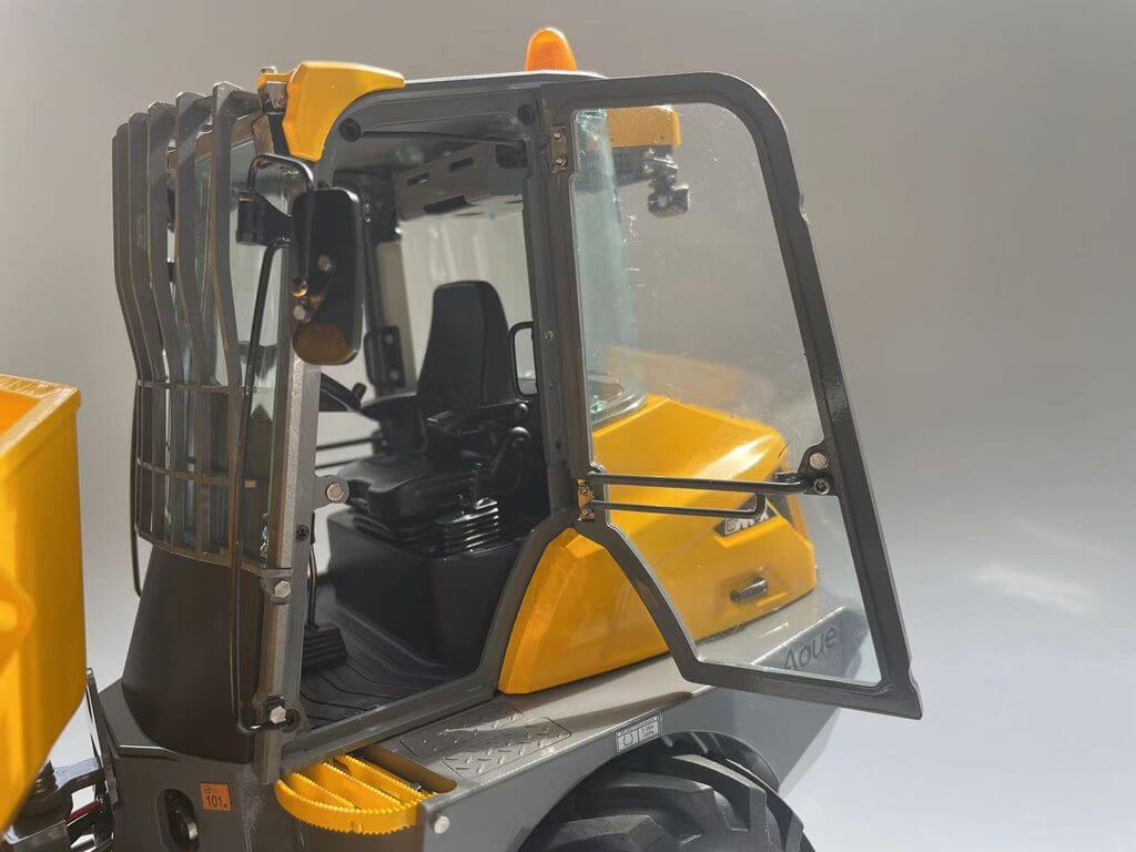 Der Mini-Kipper 6MDX ist bereits mit Beleuchtung, Servos, Regler, Hydraulik und Soundsystem ausgestattet.