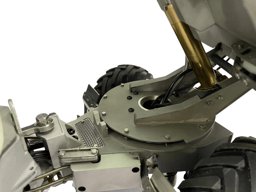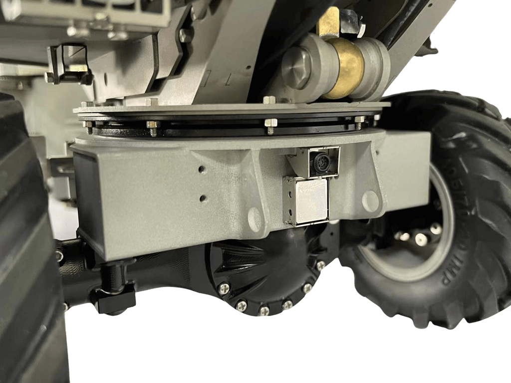 Die Knick-Lenkung mit einem Lenkwinkel von 25° wird hydraulisch angesteuert.