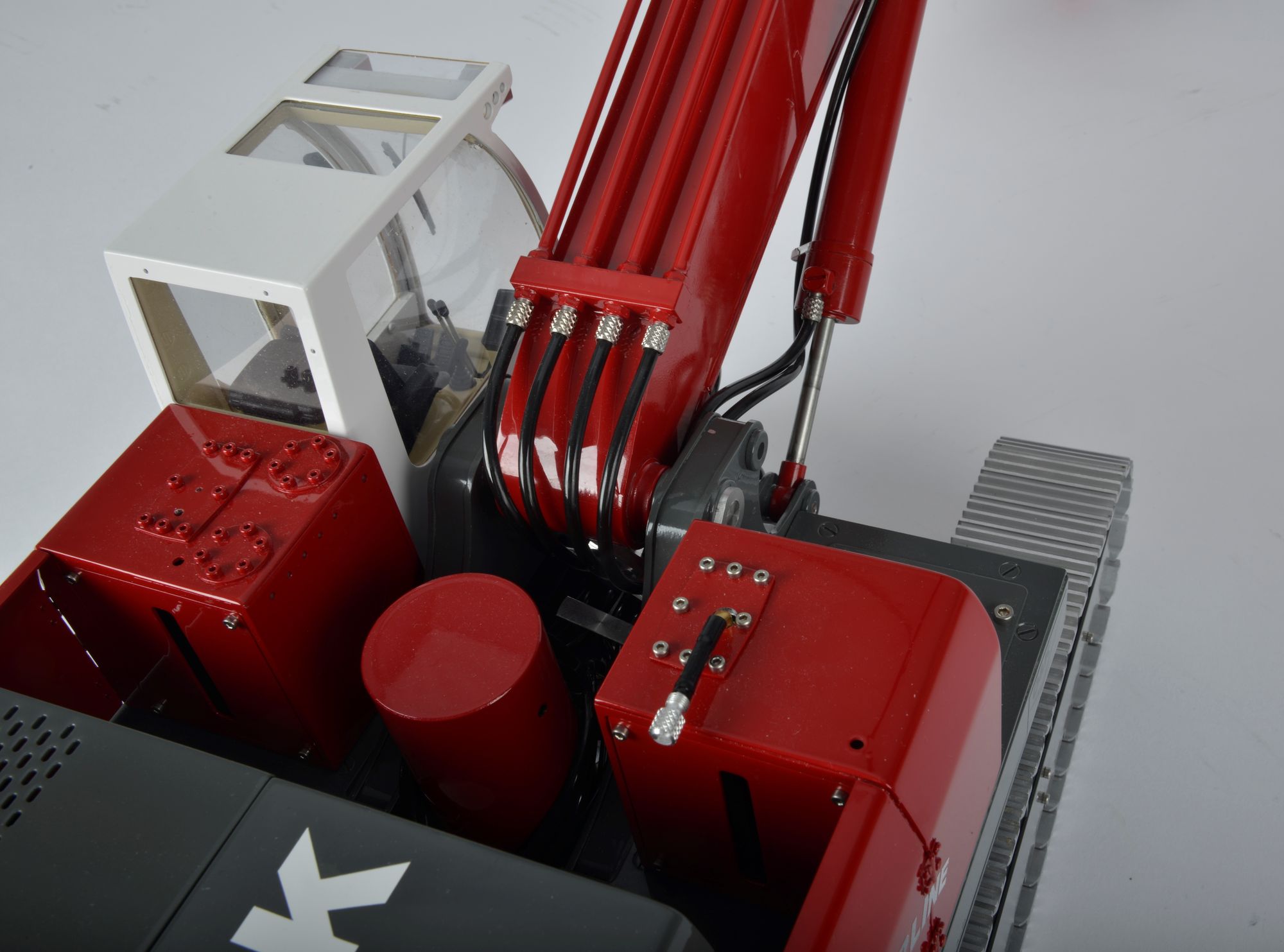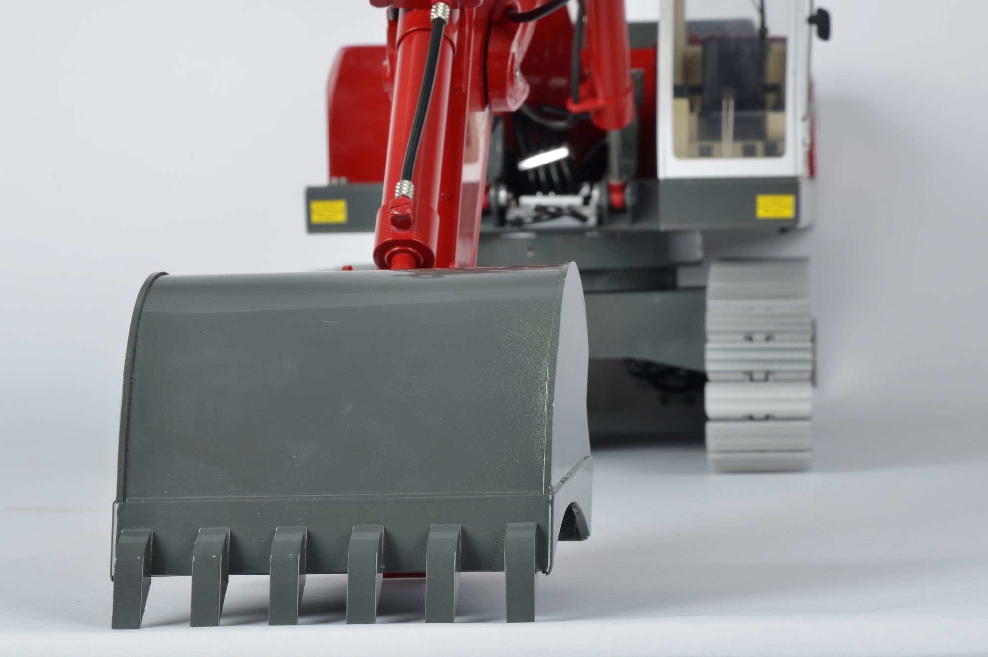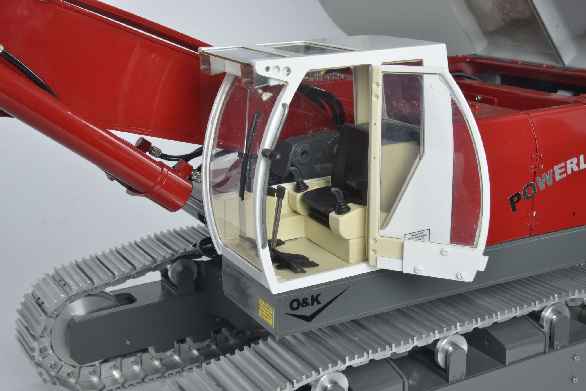 Der Kettenbagger wird komplett montiert, unlackiert geliefert. Beschriftung liegt bei.