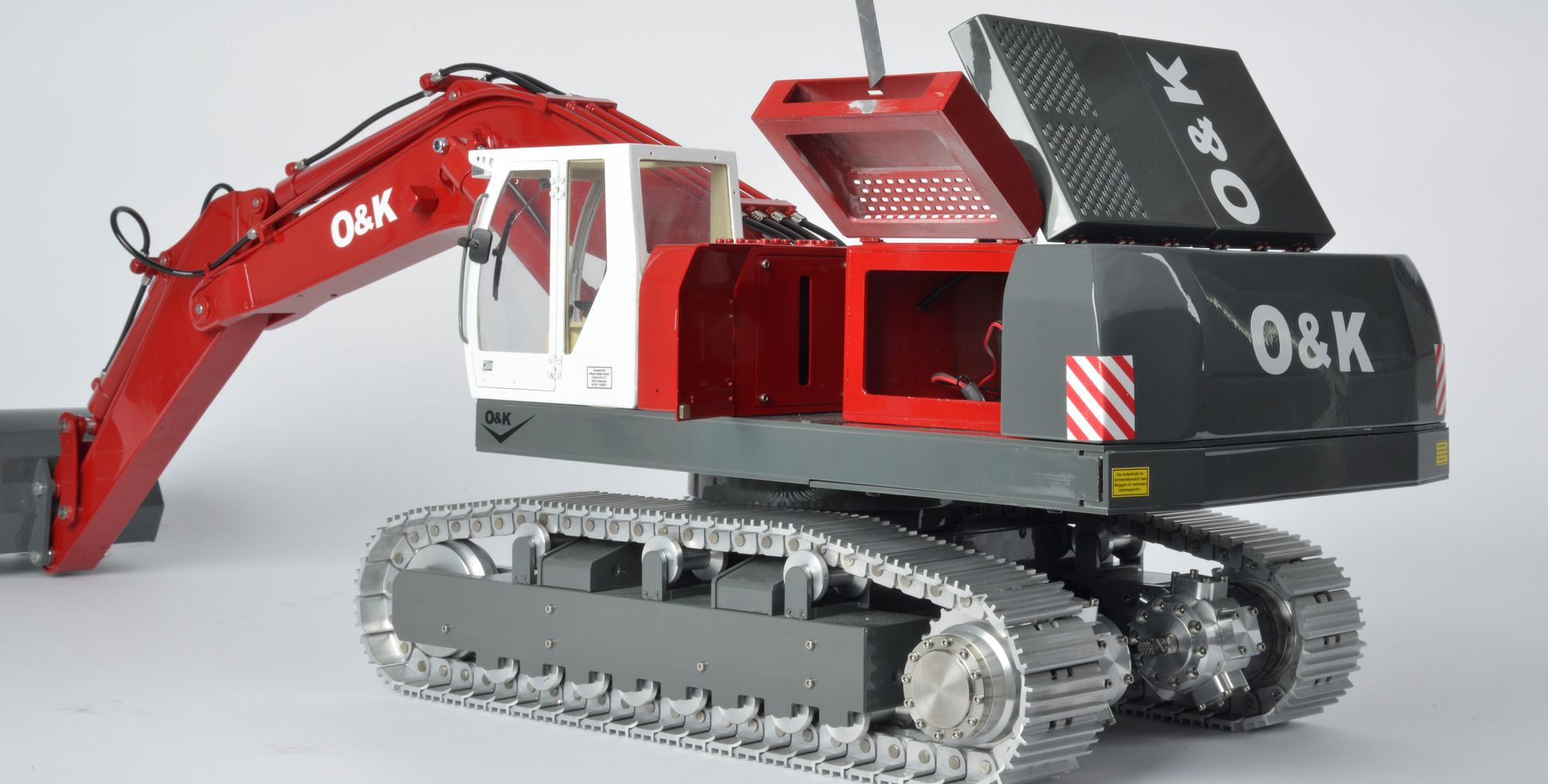 - Vorbildgetreues Modell des 60 Tonnen RH 25.5 Kettenbaggers im Maßstab 1:14,5.