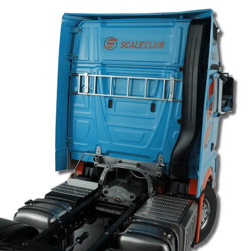 Leiter aus Edelstahl mit Endkappen und Halterungen. Ideal zur Montage hinter dem Fahrerhaus.