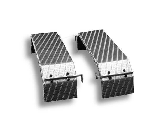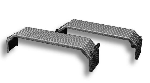 1:14 Doppel-Kotflügel breit Edelstahl Riffelblech Paar. Mit Rahmenhalterung. thcon-models.