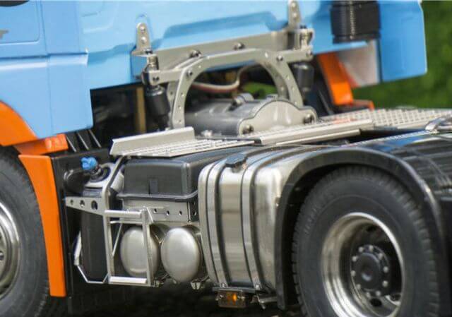 Passend für Tamiya-Actros Fahrerhäuser. Der Verschluss wird zusätzlich mit einer Federspange gesichert.