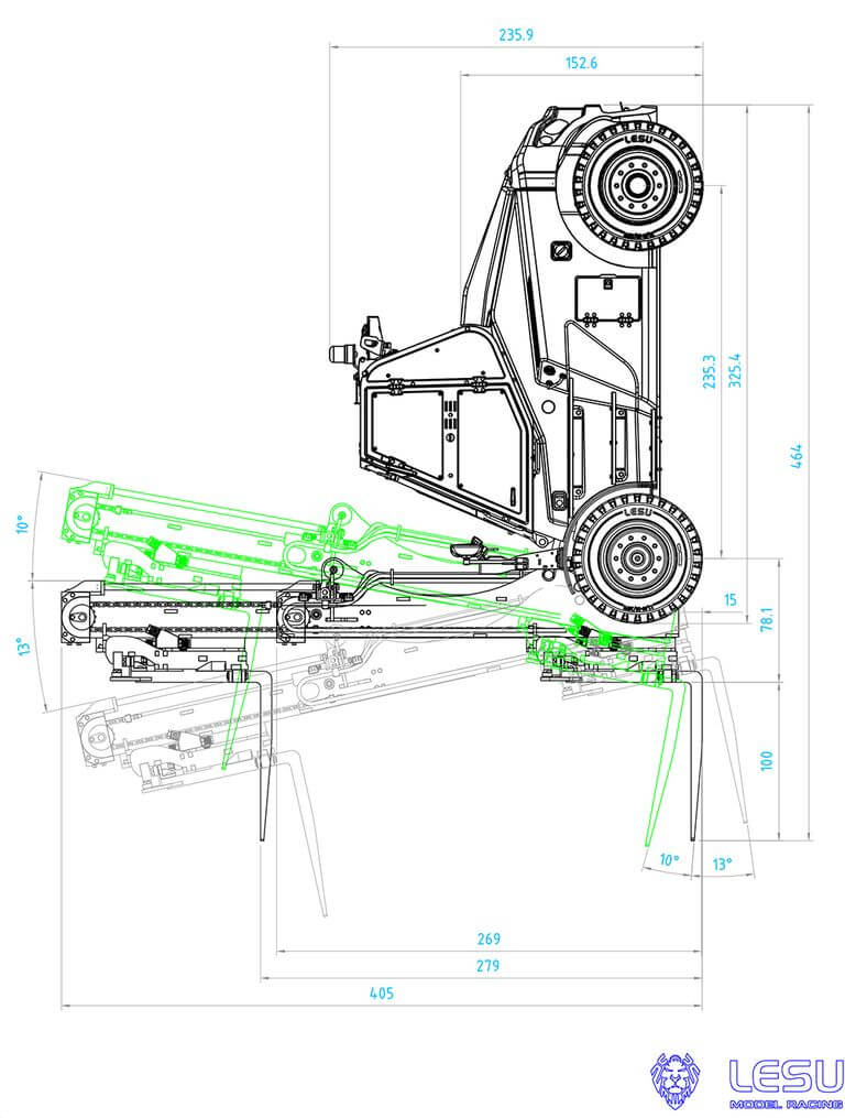 Bausatz Gabelstapler unlackiert Hydraulikanlage mit Brushless-Pumpe Steuerventil Motoren Regler Servos LED-Lichtsystem Soundmodul Bauanleitung