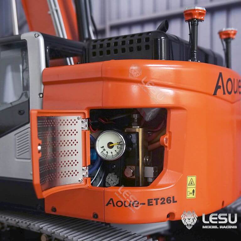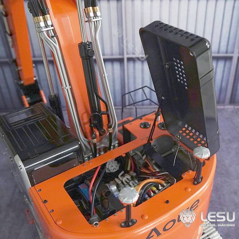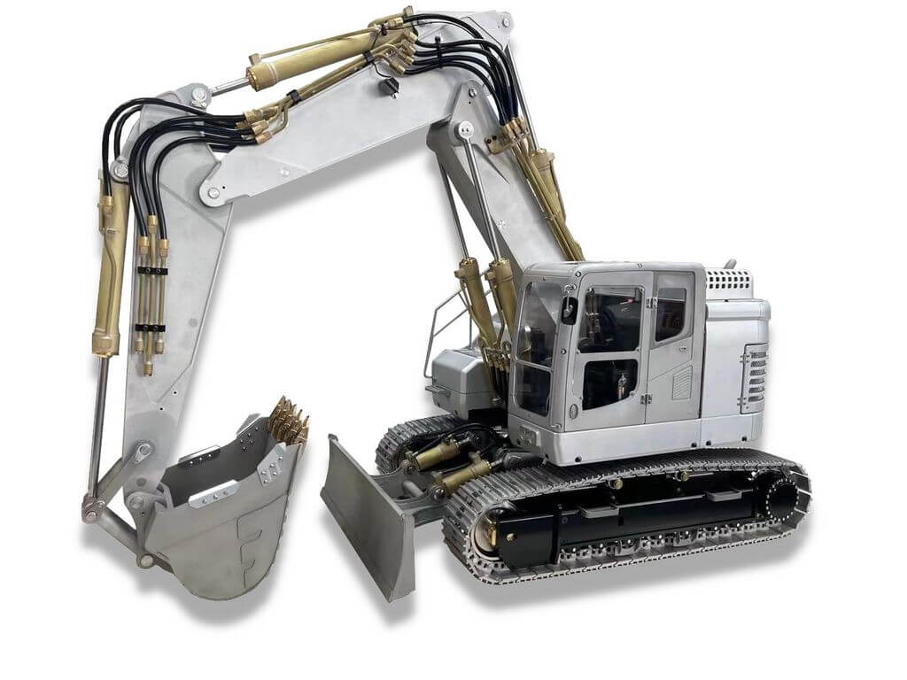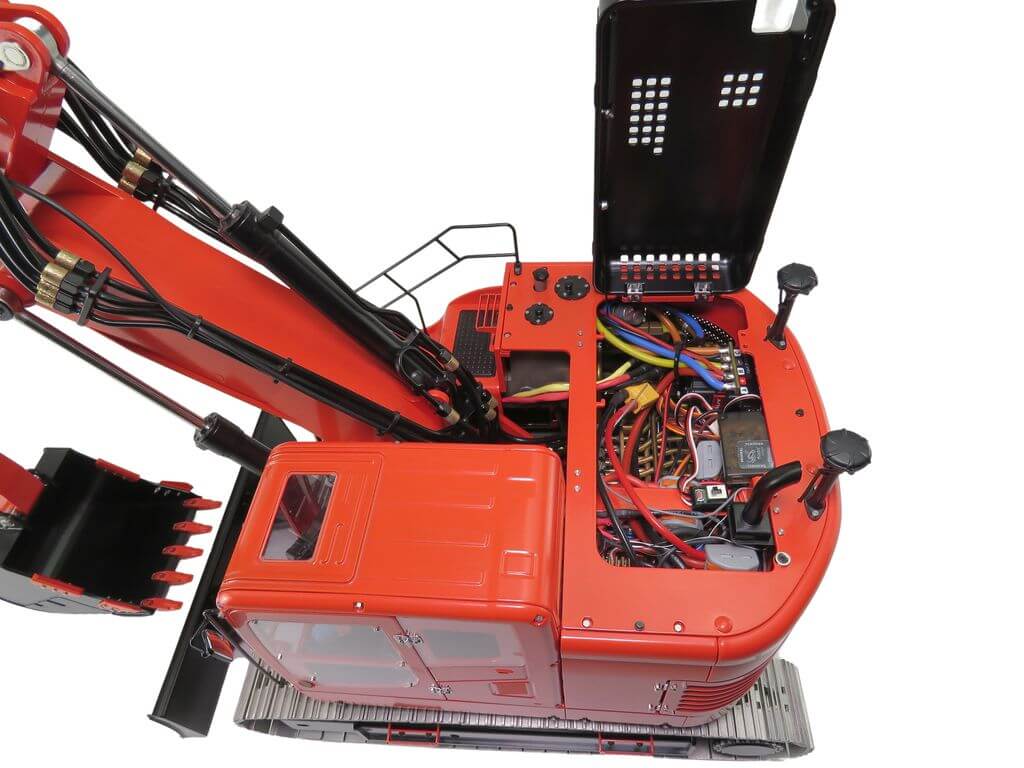 Der Bausatz wird inkl. Motoren, Hydraulikanlage mit Brushless-Pumpe und Regler geliefert. Zudem ist die komplette Beleuchtung inkl. Rundumleuchte und GPS-Antenne inklusive.