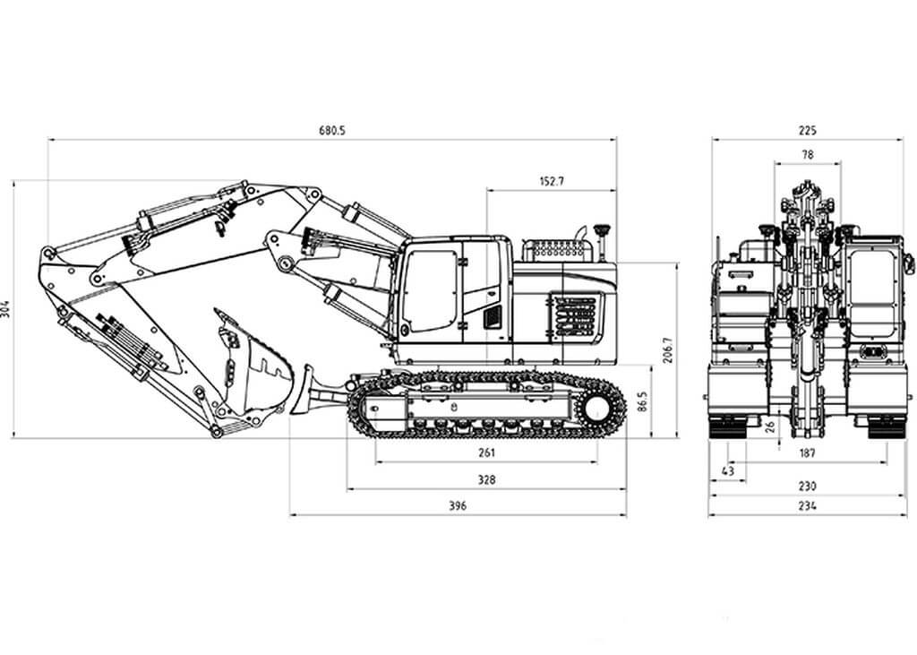 Breite: 234mm Höhe: 304mm Kettenlaufwerk: 328mm Gewicht: ca. 18kg