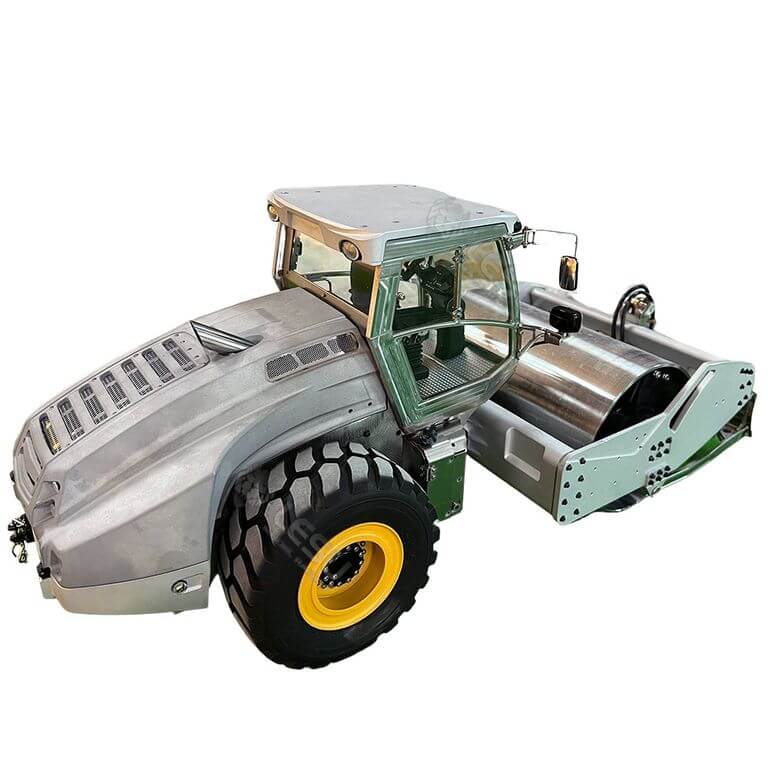 Präzise gefertigter Planierwalzen-Bausatz aus Metall mit Hydraulik.