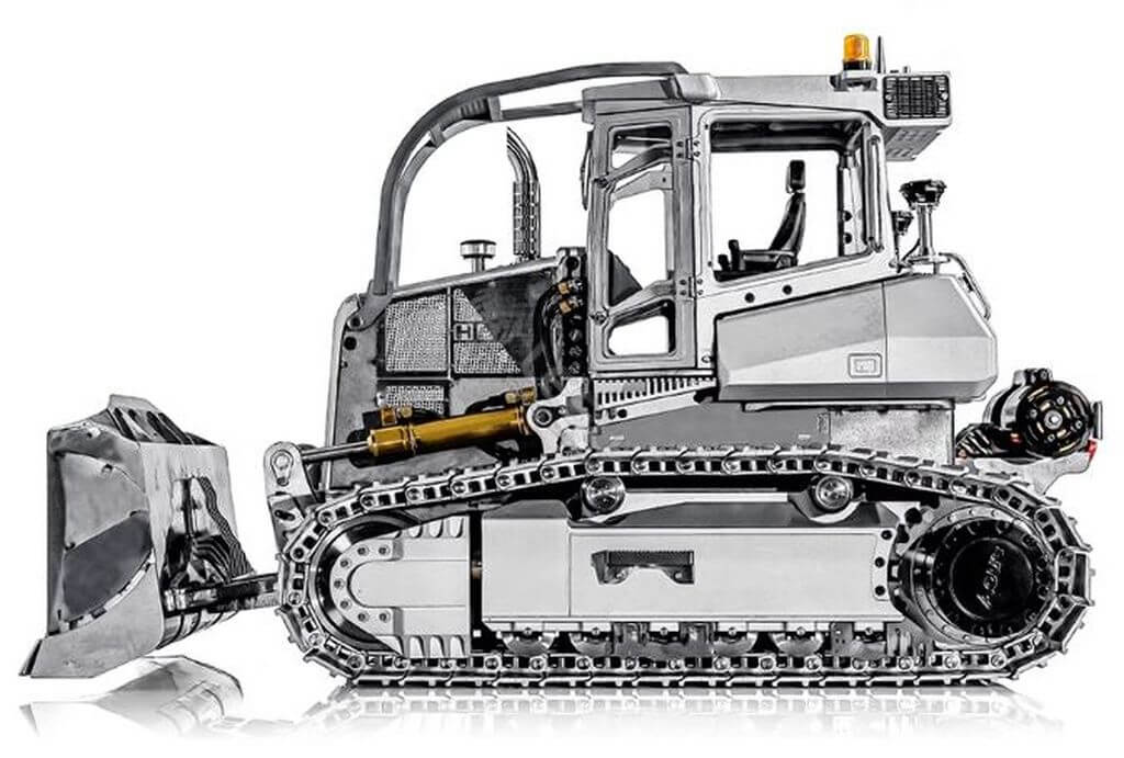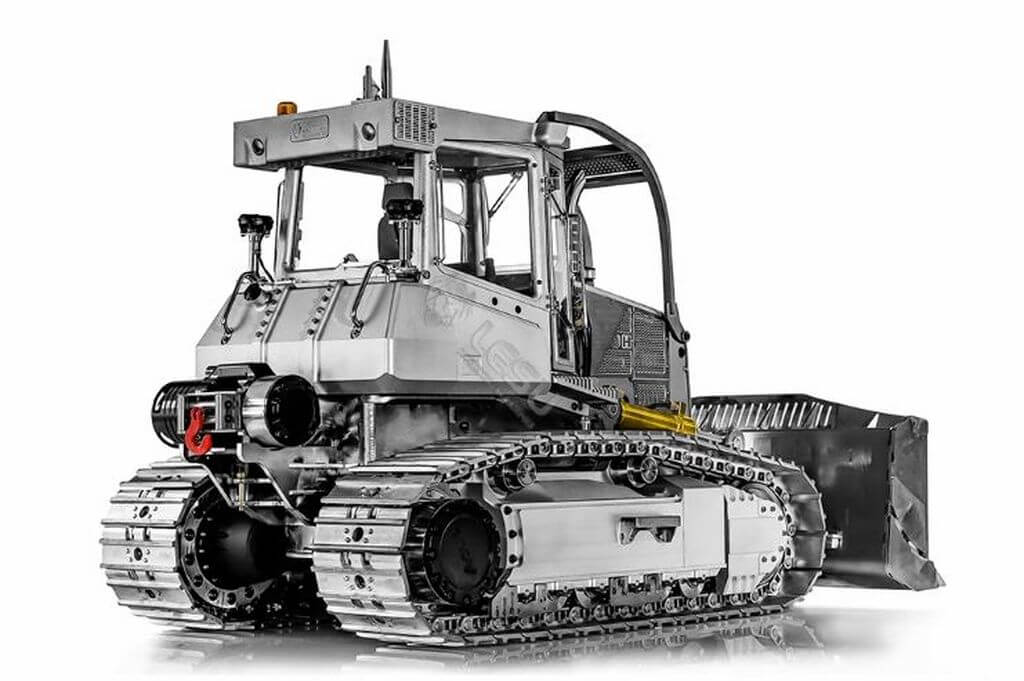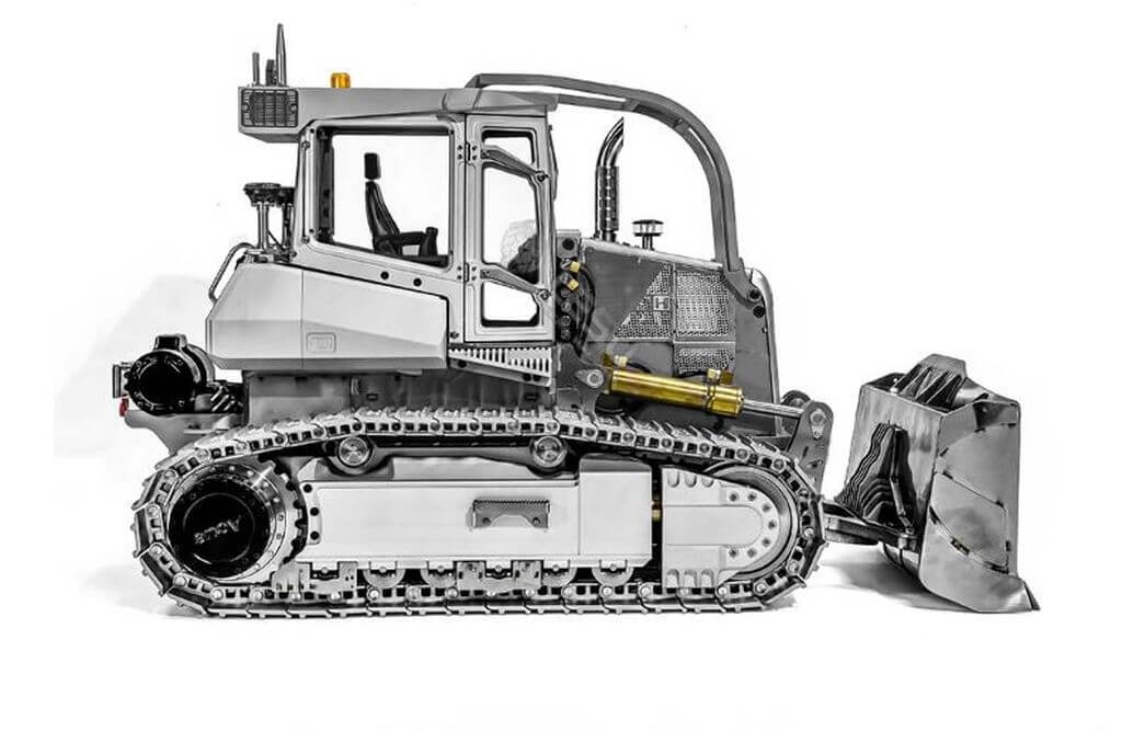 Präzise gefertigter Planierraupen-Bausatz aus Metall mit Hydraulik.