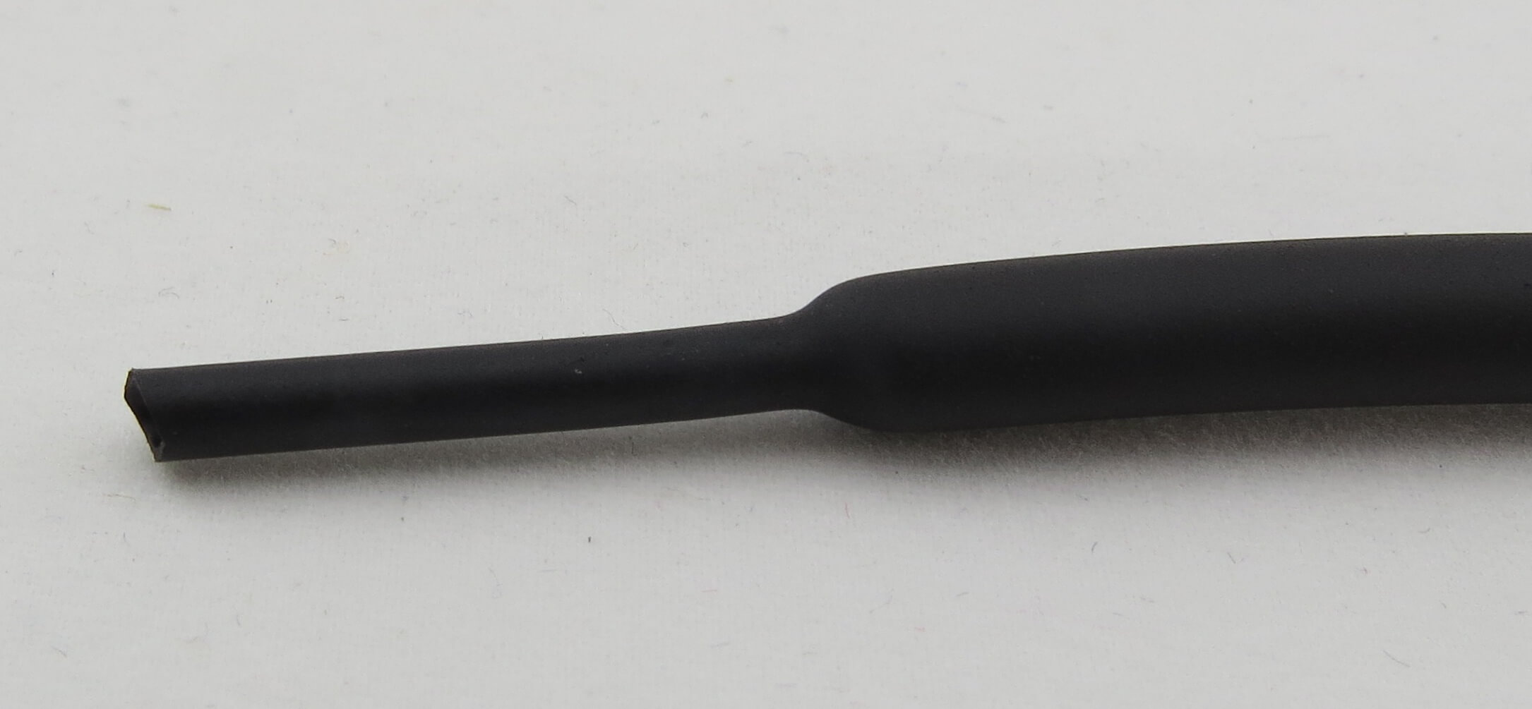 1,2m Schrumpfschlauch, schwarz, 4:1! vor 12,0 nach 3,0mm, Rate 4:1, 1,2m- Stück, mit Kleber (innen).