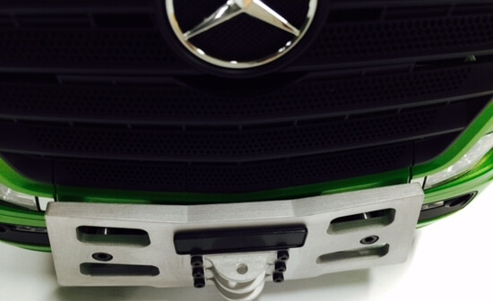 1 Alu-Schwerlastkupplung ACTROS. Für Tamiya Actros-Zugmaschinen. Incl. Kleinteile und Befestigungsmaterial. Schwerlast-Register-Kupplung für MB ACTROS.