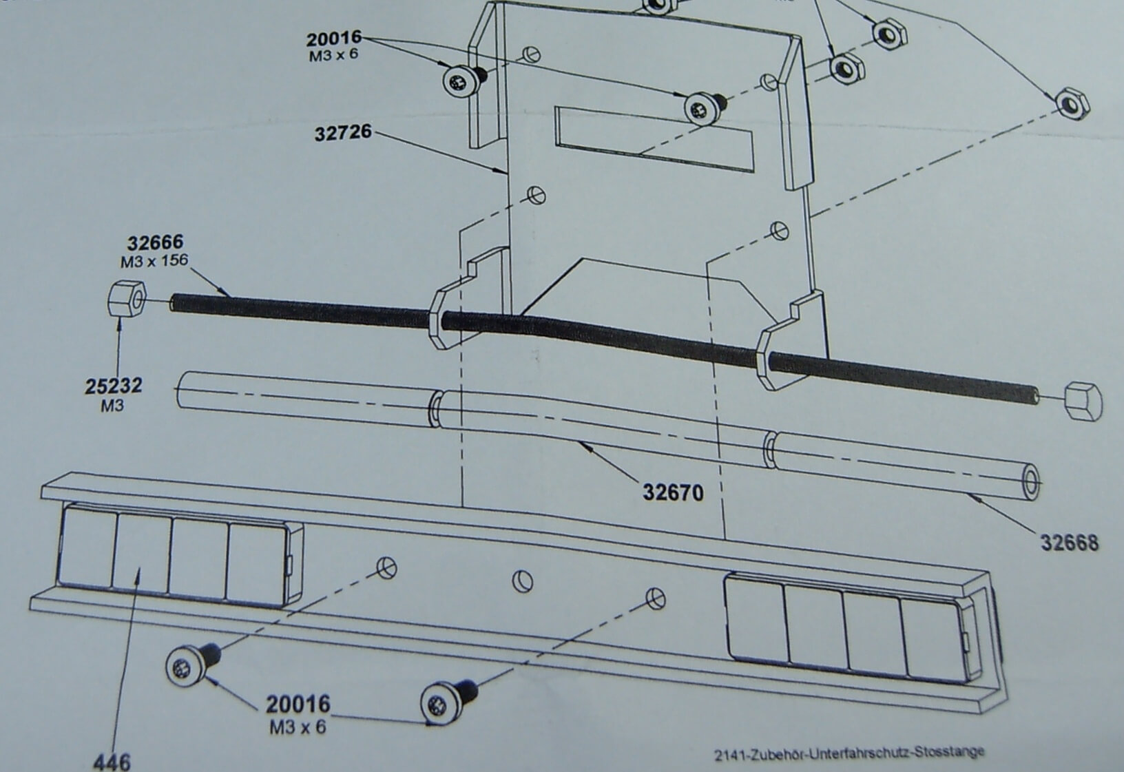 1 Bausatz Heck-Unterfahrschutz. Zum Anschrauben an die Rahmen-Endtraverse. Silbergrau pulverbeschichtet. (2141). Gesamtbreite 160mm. Höhe 60mm. Für die Verwendung mit Heckstoßstange.
