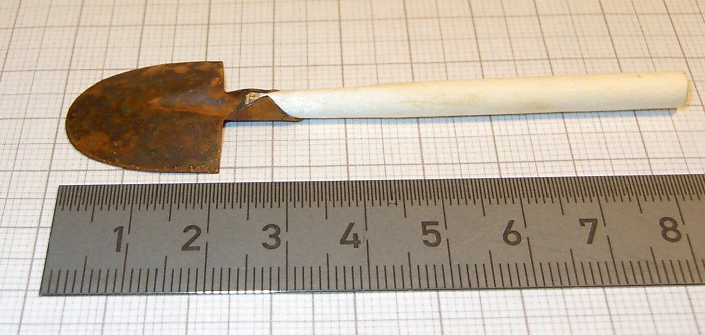 1 Blech-Schaufel, rostig, ca.8cm lang.