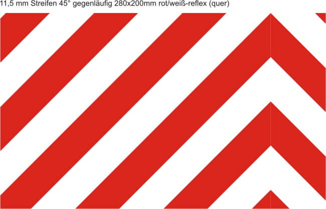 1 Dekorbogen Warnstreifen reflektierend ca. 200x280mm 11,5mm-Streifen,45° li/re. rot/weiß-reflektierend, (QUER), selbstklebend.