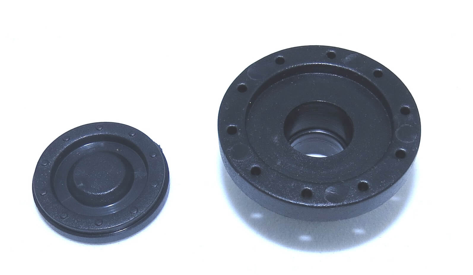 1 Freilauf-Nabe V1, Kunststoff mit Sitz für 2 Kugellager (1891). Lochkreis 25mm. 10 Löcher für M1,6, schwarz ABS. Tamiya. Kugellager sind nicht im Lieferumfang enthalten. Siehe Artikel-Nr. 1891