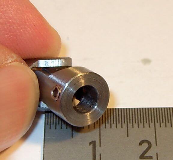 1 Kardangelenk 10mm Durchmesser, 10/10mm Gesamtlänge 20mm,Stahl blank, beidseitig Bohrung 5mm H7 mit Gewindestift M3.