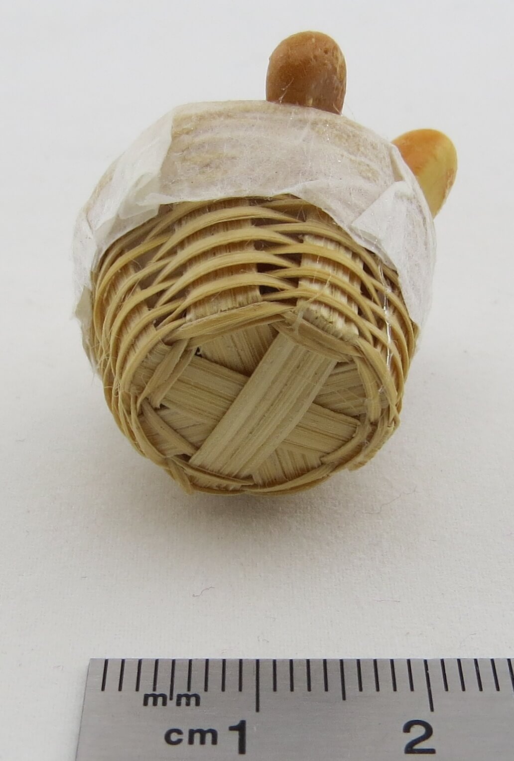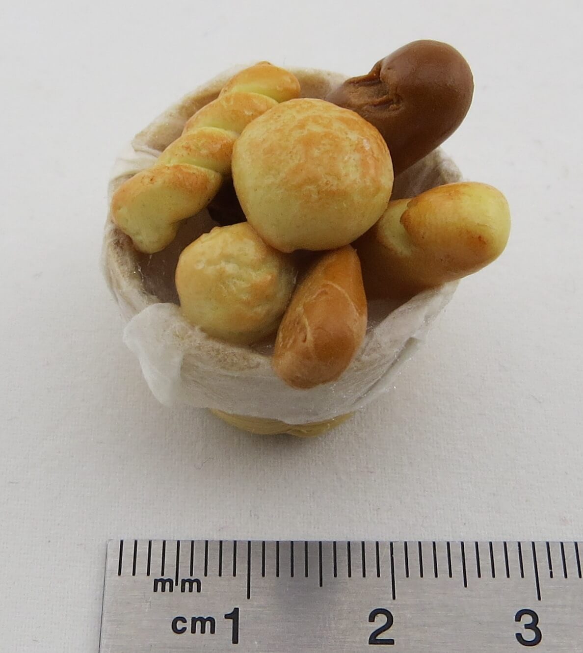 1 Korb mit Brot und Brötchen (Set). Korb ca. 30mm Durchmesser.