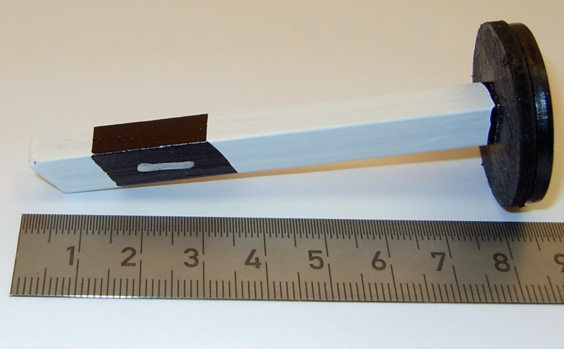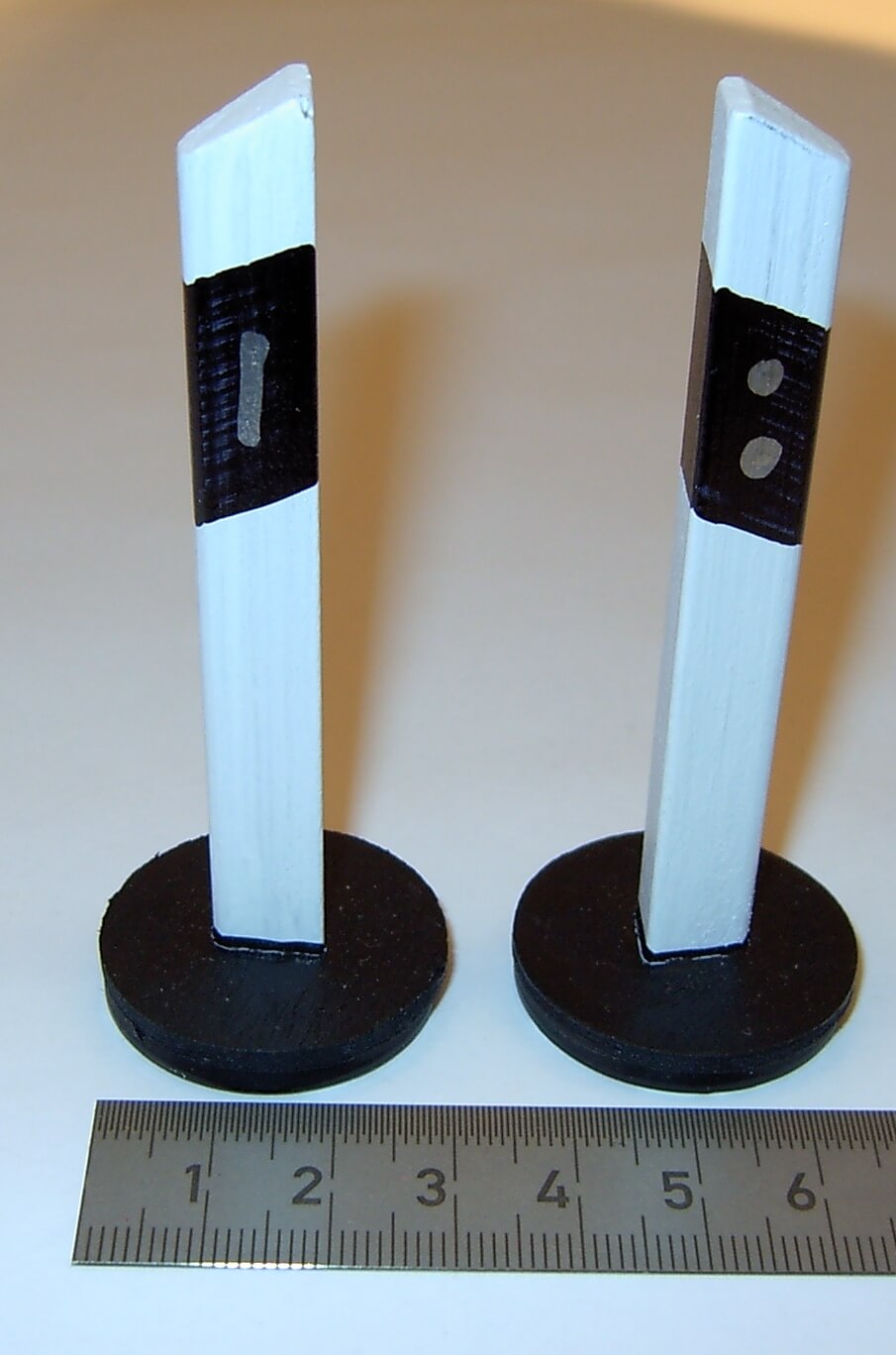 1 Leitpfosten mit Fußteil. In Handarbeit hergestellt und lackiert. Die Lackierung ist wasserfest und somit auch für den Außeneinsatz geeignet. Höhe: 82mm.