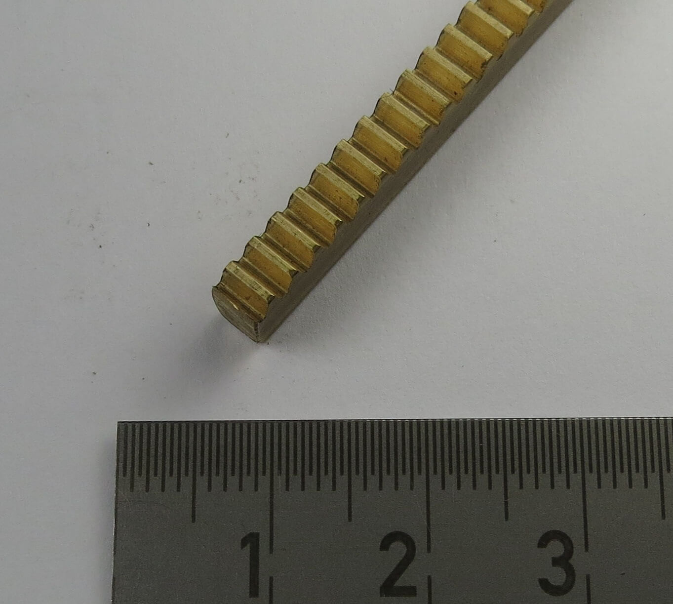 1 Messing-Zahnstange Ms58, Modul 0,7 Zahnbreite 4mm Höhe 6mm, Länge 250mm. Eingriffswinkel 20°, Gewicht 42gr.