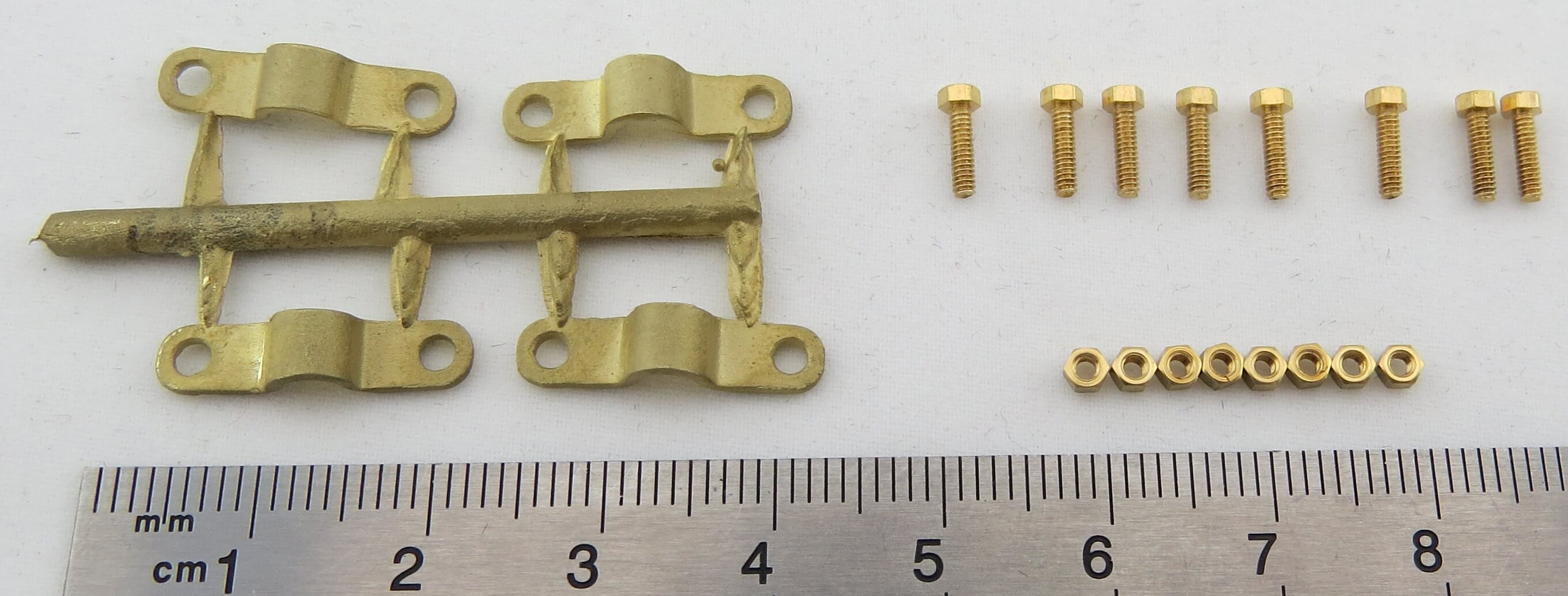 4x Kotflügelhalter (Messingguss am Gießast) je ca. 18x4mm