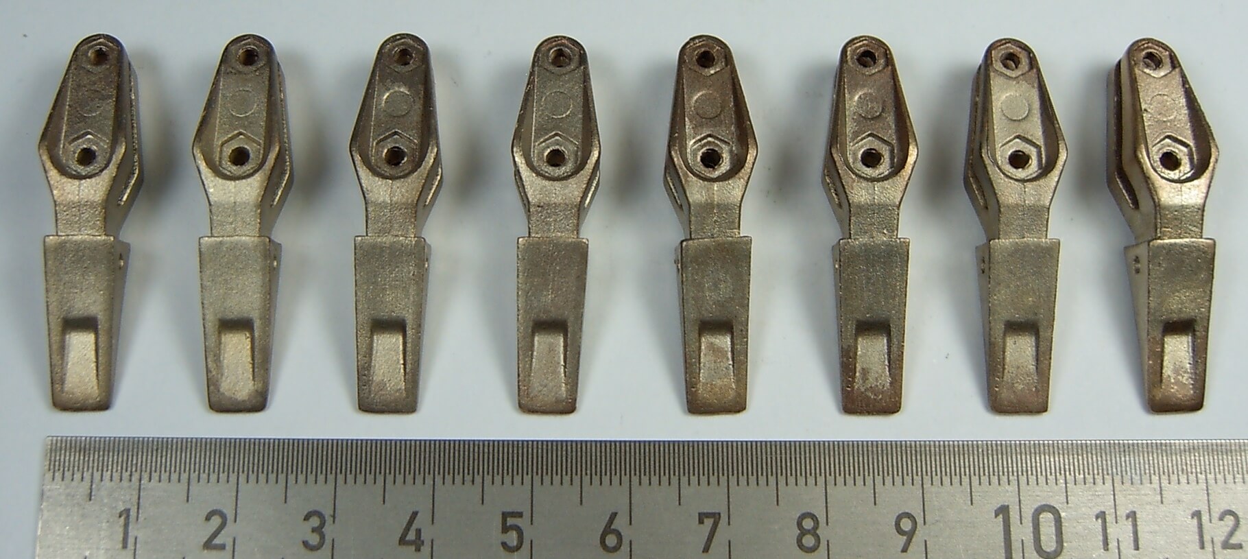 1 Schaufelzähnesatz (8 Zähne) für LR634- Laderaupe aus Neusilber-Guss.