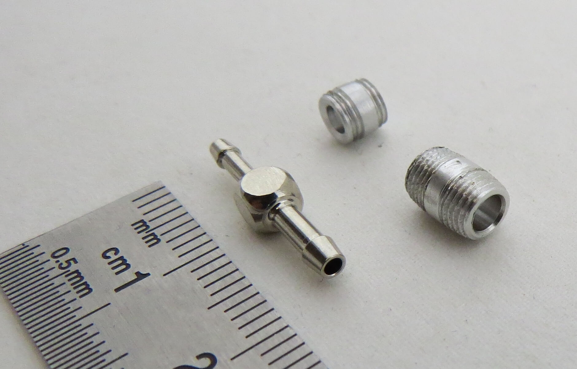 1x Schlauch-Reduzierer 1,5 auf 1mm 1x Überwurf-Sicherung für 1,5mm-Seite 1x Überwurf-Sicherung für 1mm-Seite