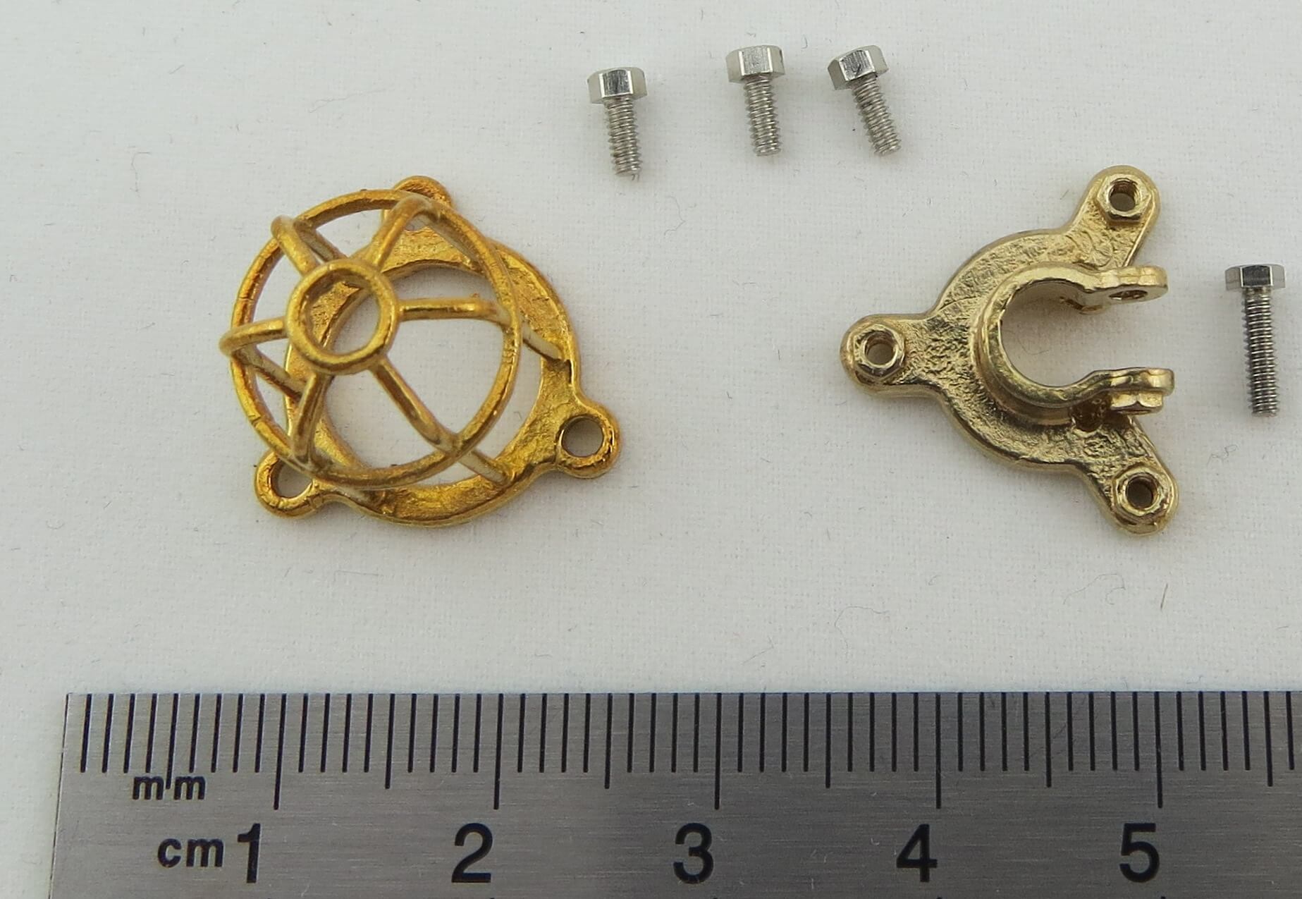 1 Schutzgitter für Rundumleuchte 1/16, Messing. Für Rohr-Montage. Mit Halter. 1 Schutzgitter für Rundumleuchte 1/16, Messing. Für Rohr-Montage. Mit Halter.