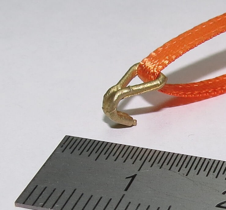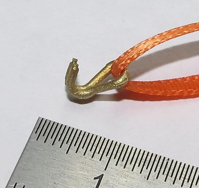 1 Set aus 4 Doppelhaken, klein. Messing- Feinguss und Zurrband. Maße je Haken ca. 7,5x6x4mm. Kleine Bauform.Die Haken sind mit mäßigen Zugkräften belastbar. Passend zum Tamiya- und Wedico-Maßstab.
