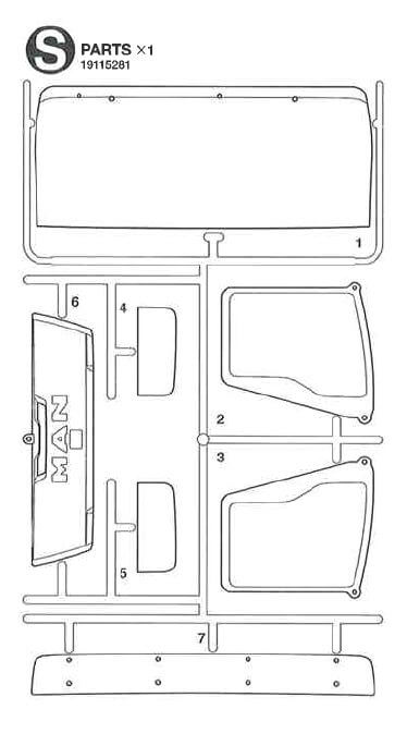 1 Spritzguss-Teilesatz S-Teile, klar. Für MANs von Tamiya. 319115281. (neue Version).