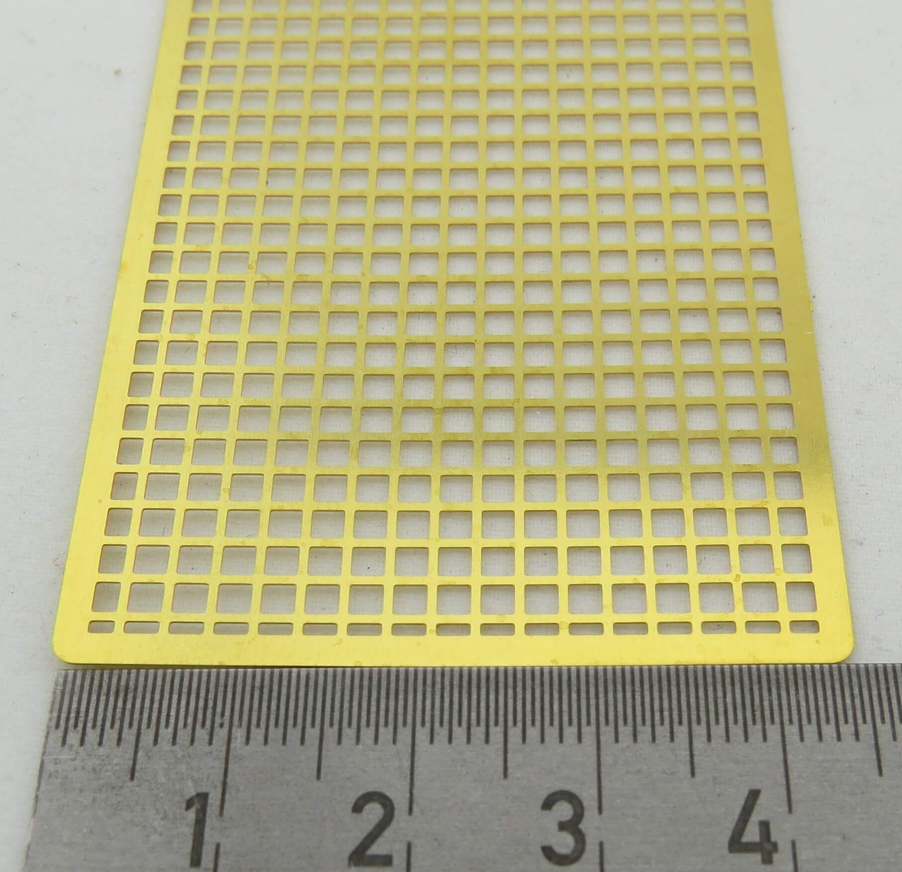 1 Streifen Lochblech, Messing 0,2mm. Größe ca. 305x45mm. 1 Stück. Lochung quadratisch in parallelen Reihen . Lochmaß 2x2mm.