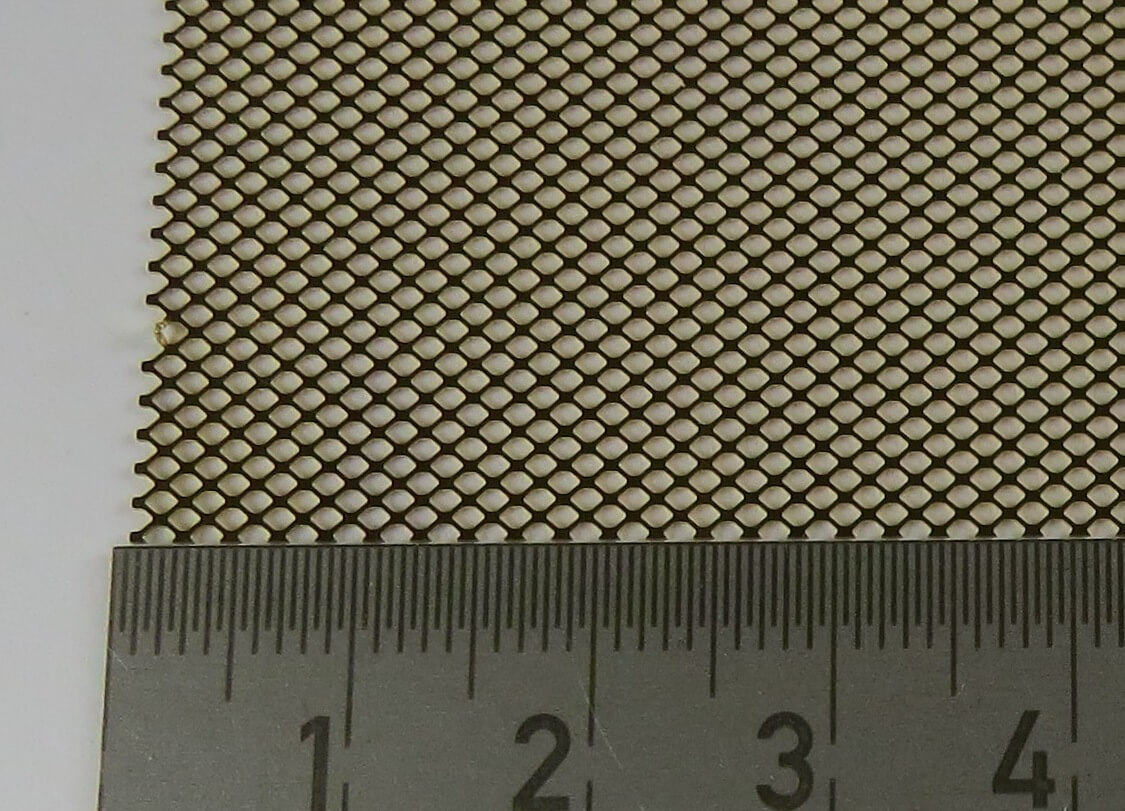 1 Trittblech 100x250mm Messing. (5735/03). Materialstärke ca. 0,25mm. Größe der Ausbrüche ca. 0,8x0,8mm.