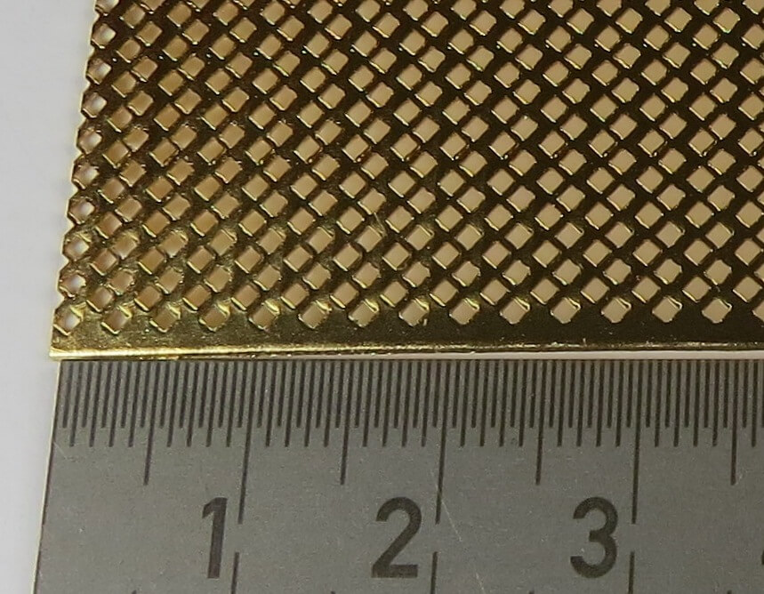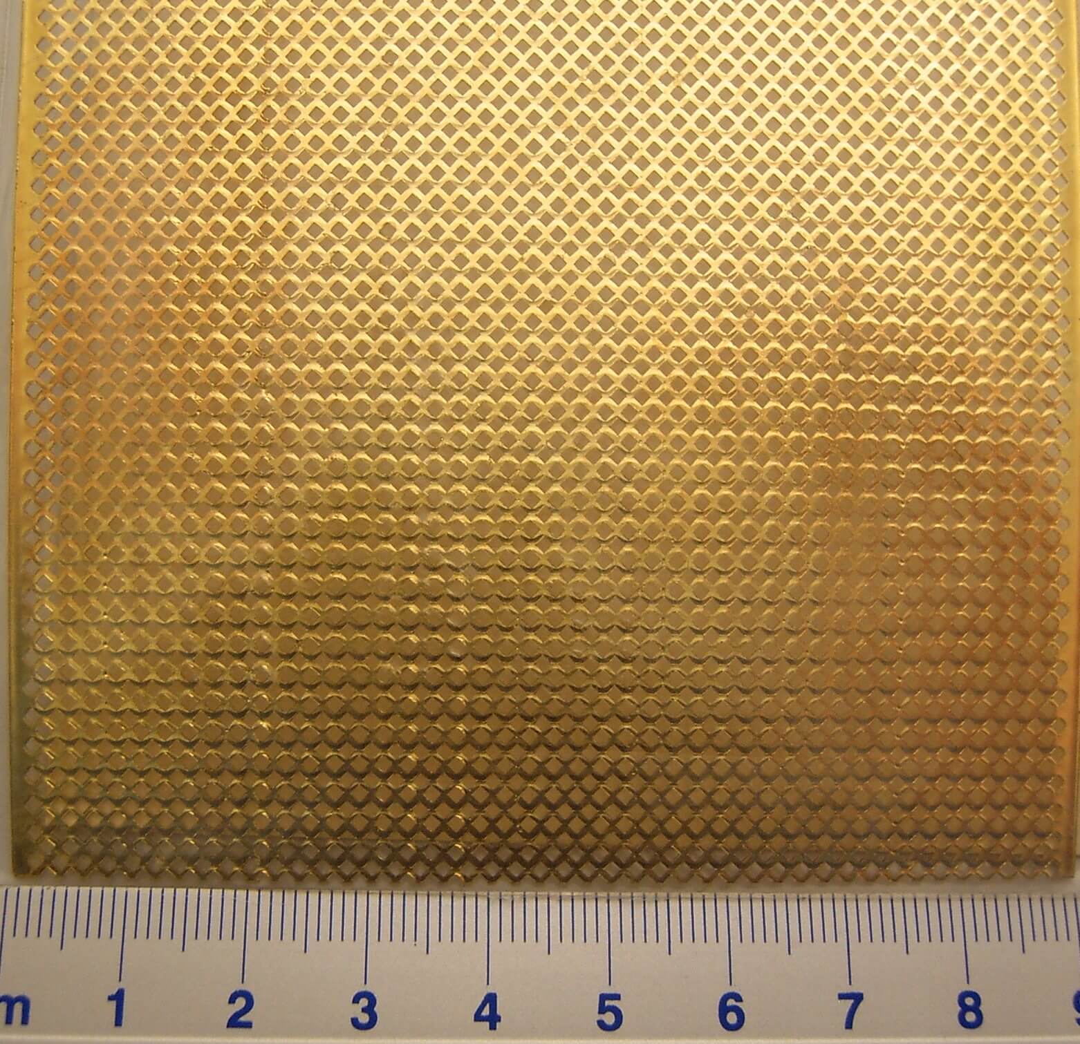 1 Trittblech 90x250mm Messing rautenförmige Ausbrüche (ca. 1,1x1,1mm) (5735/05). Materialstärke ca.0,4mm.