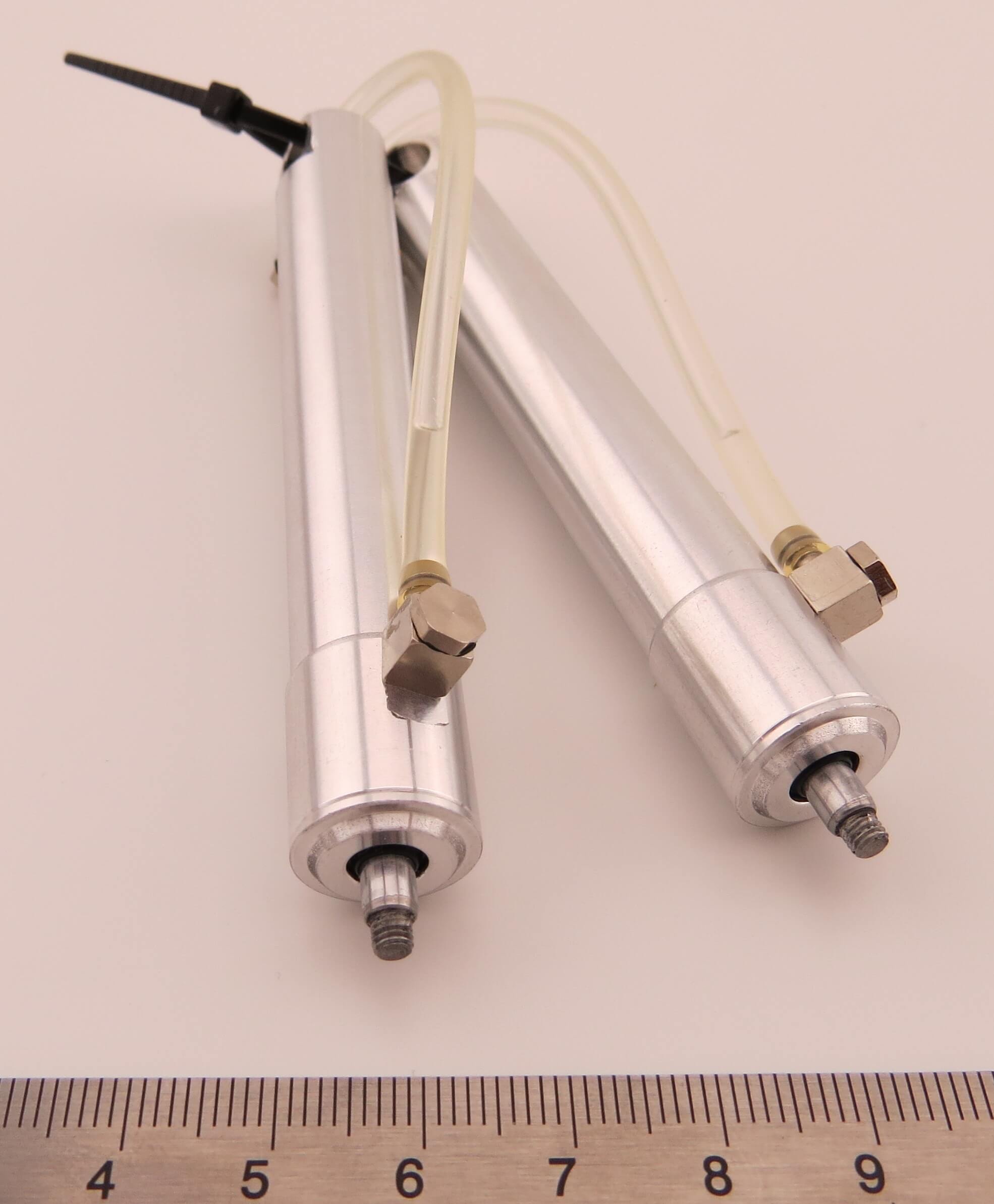 1 Tuning/Nachrüst-Satz für Carson LR634 Laderaupe. 2 stärkere Hubzylinder mit verchromten Kolbenstangen und Schmutz- Abstreif-Ring.
