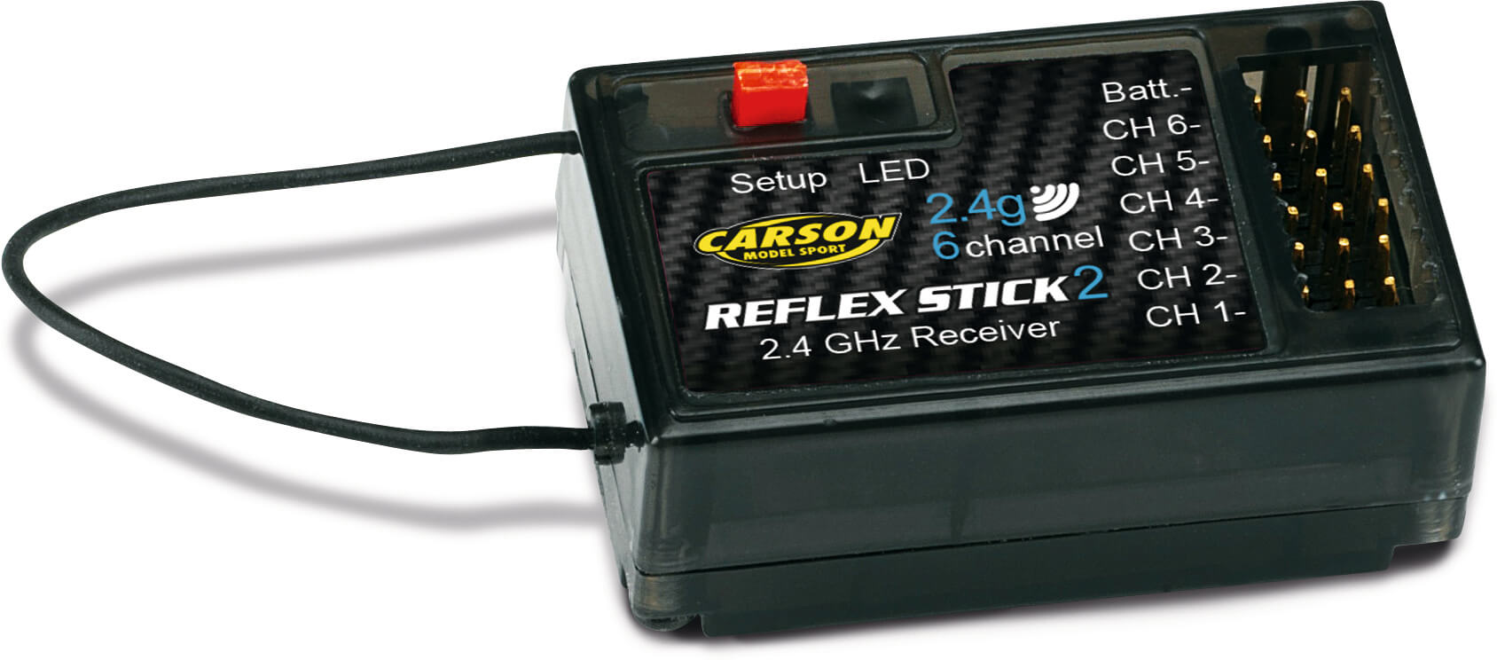 1x 2,4GHz-Empfänger mit 6 Kanälen. Für CARSON Reflex-Stick II. NICHT kompatibel mit Reflex-Stick Version 1!