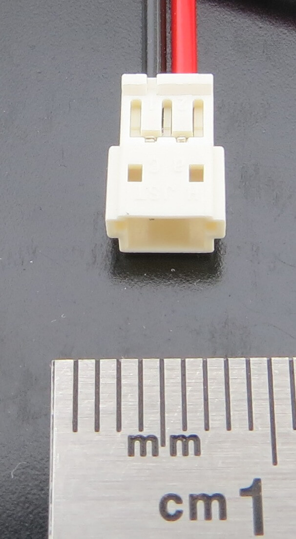 1x 2-poliges Anschlußkabel (male). PVC-Litze. RM 1,5mm. 30cm lang. 2x 0,14qmm rot/schwarz.