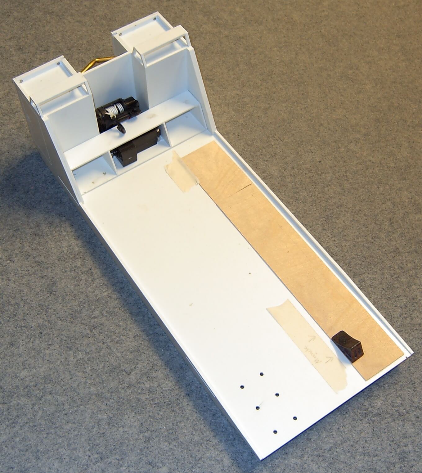 Die 2 Stauräume sind über Türen zugänglich und werden mit Minimagneten gehalten. In der Ladefläche im Auffahrbereich sind 4mm Bohrungen für Minimagnete vorgesehen. Man kann sich dazu in einen Hemmschuh passend einen Gegenmagnet einbauen und so ein Fahrzeug naturgetreu festsetzen. Die Ladefläche selbst kann mit verschiedenen Materialien verkleidet werden.