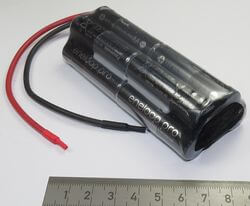 1x Akku-Pack mit 10x SANYO-Zellen (2xW). 12V, 2450mAh NiMH ENELOOP PRO mit 2x W-Bauform, ca.20cm Silikon-Kabel 1,5 qmm. Ca. 315gr. SONDERBAUFORM 2xW. Ca. 103x45x28mm.