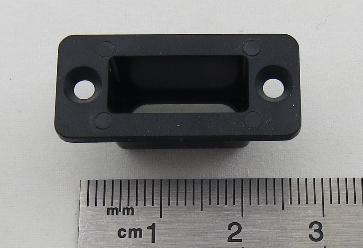 1x Einbaurahmen für Hochstromstecker oder Hochstrombuchse. Kunststoff, schwarz. Lange Ausführung. Lieferung erfolgt ohne Stecker oder Buchse.