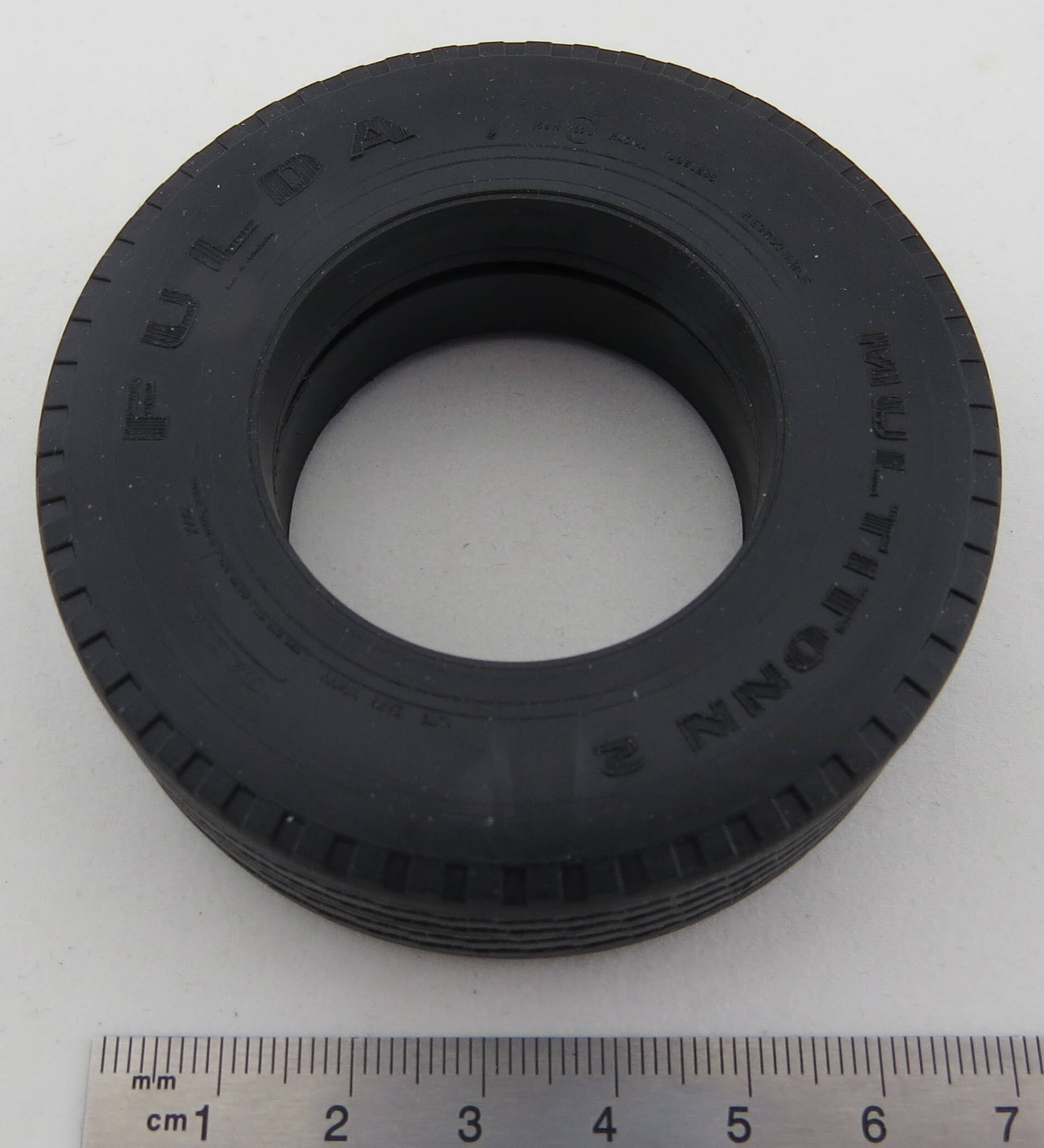 1x Hänger-Breitreifen (220978) WDC-Massstab, 72,5mm außen, 40mm innen, 24mm breit, Hohlreifen. FULDA Multitonn2 385/65R22.5 tubeless.