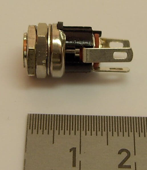 1x Klinken-Einbaubuchse 5,5mm mit 2,1mm- Zentralstift, max. 2A, Einbaumaß 8mm- Loch, DC-Buchse 2,1mm.