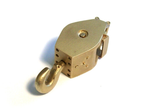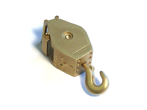 1x Kranflasche aus massivem Messing. Incl. Kranhaken, Messingfeinguß. Geeignet für Maßstab: 1:16 bis 1:14.