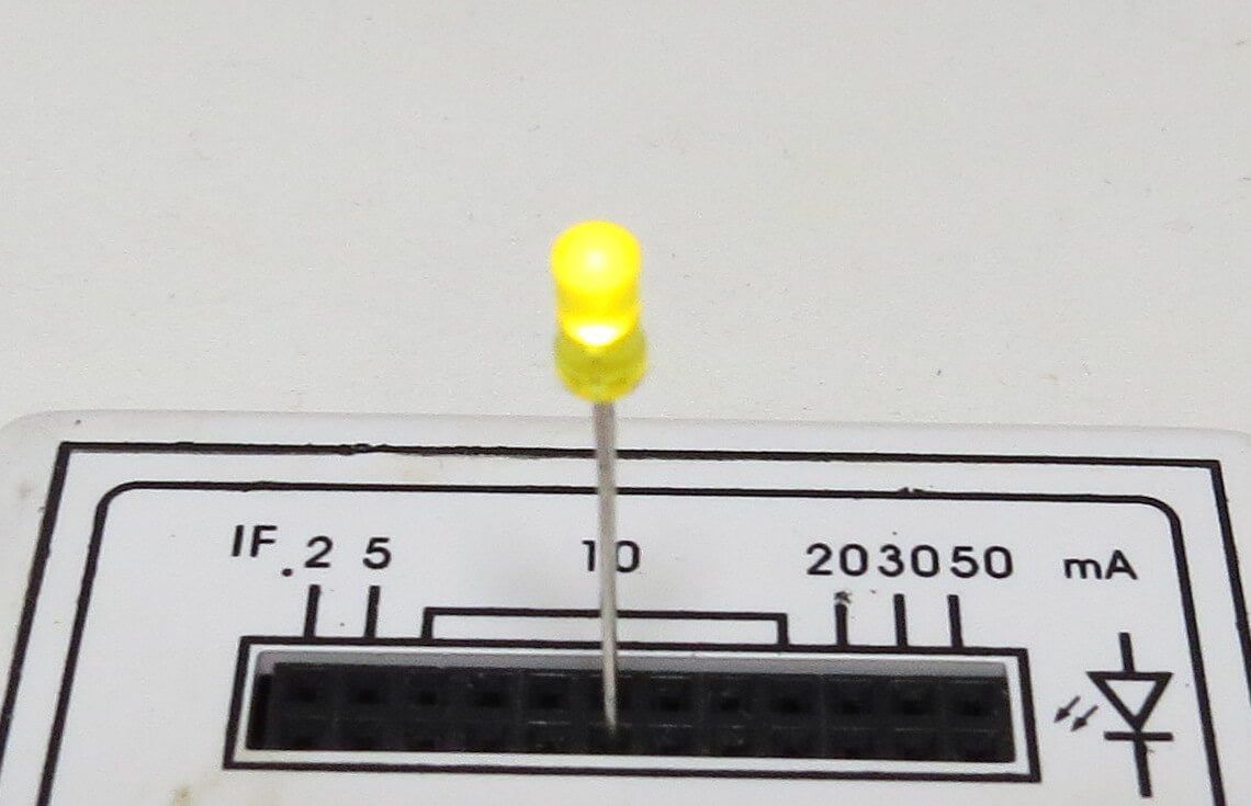 1x LED gelb 3mm, zylindrisch, diffuses gelbes Gehäuse. 2,3