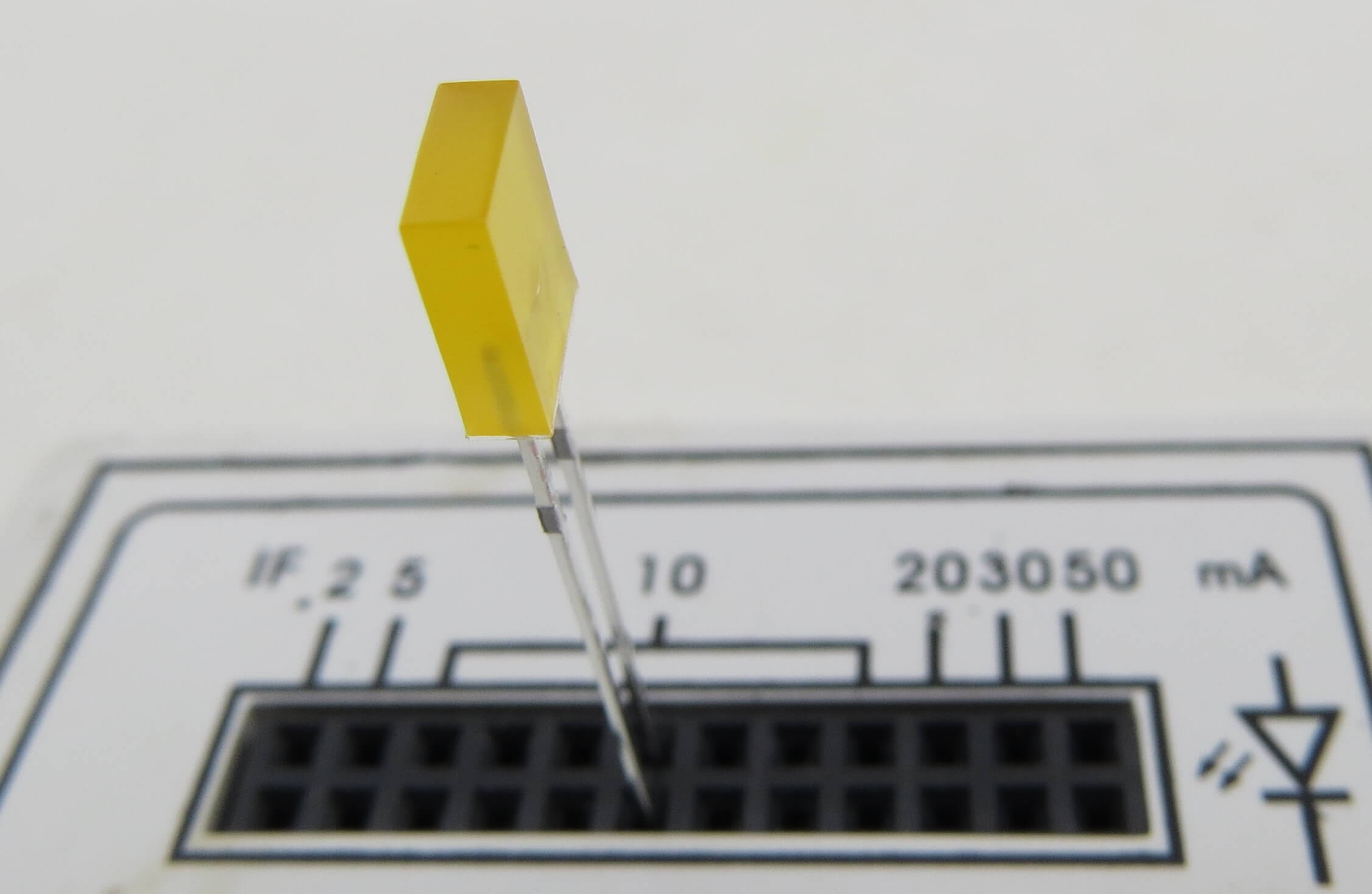 1x LED orange (Bauform Rechteck 2 x 5mm) OPTOSUPPLY max.20mA, 2,0-2,5 V. Diffus-orangenes Gehäuse. Ideal für Seiten-Beleuchtungen und Frontblitzer. Abstrahlung 150°. RoHS.