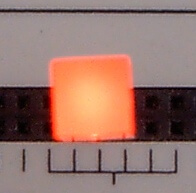 1x LED rot (Bauform Quadrat 3 x 3mm), 2-2,5V, max. 25mA. Diffuses rotes Gehäuse. 3-8mcd. Abstrahlung 110°. L-704ID.