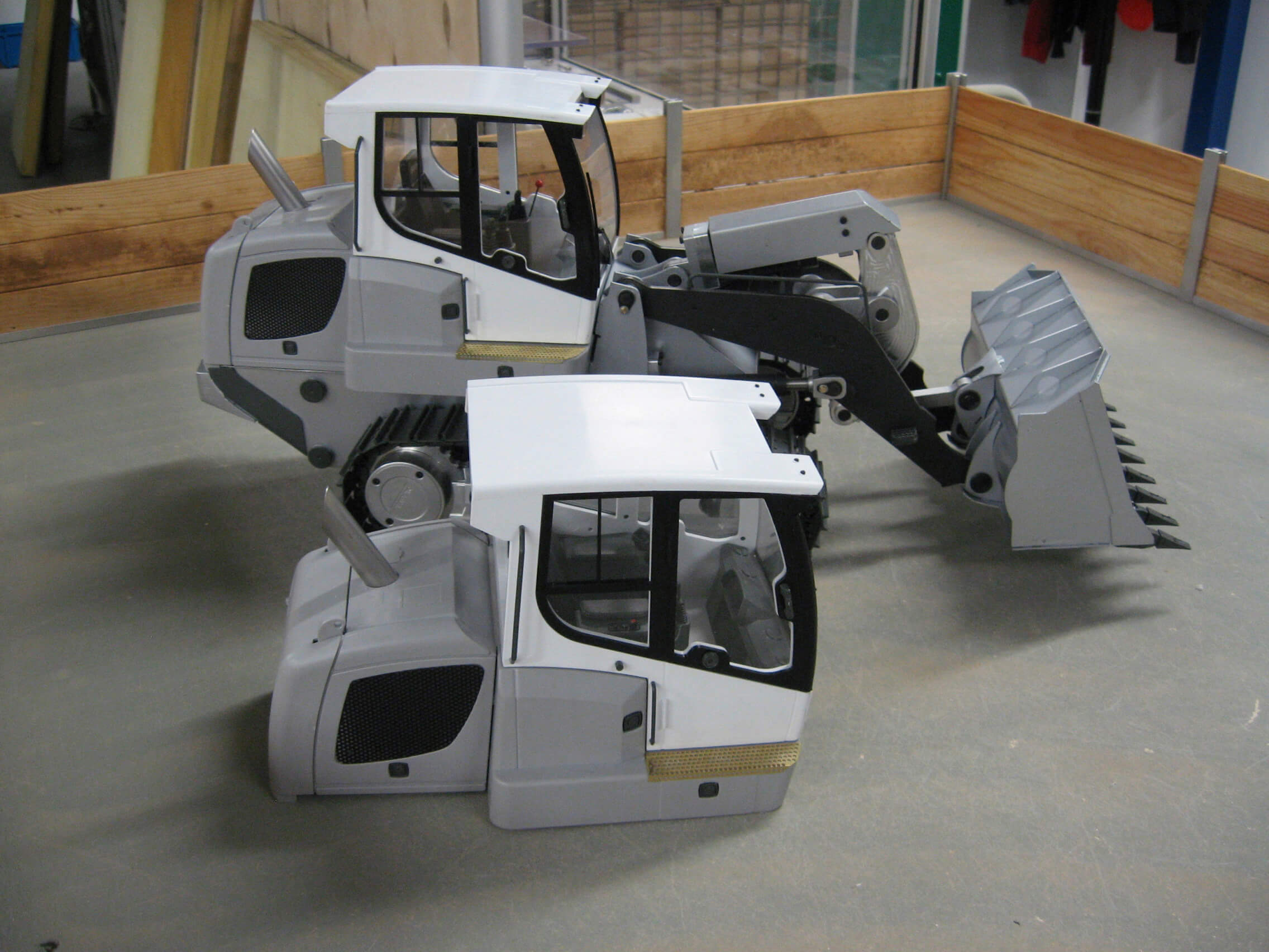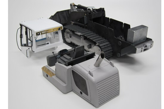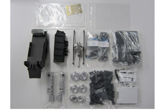Kunststoffteile zum Bau der Fahrerkabine, incl. Scheibensatz, 6 Scheinwerfer (beleuchtbar), Innenausstattung, Fahrersitz, mehrteiliger Heckabschluß, Zierbleche, Auspuff-Attrappe, Anbauteile.