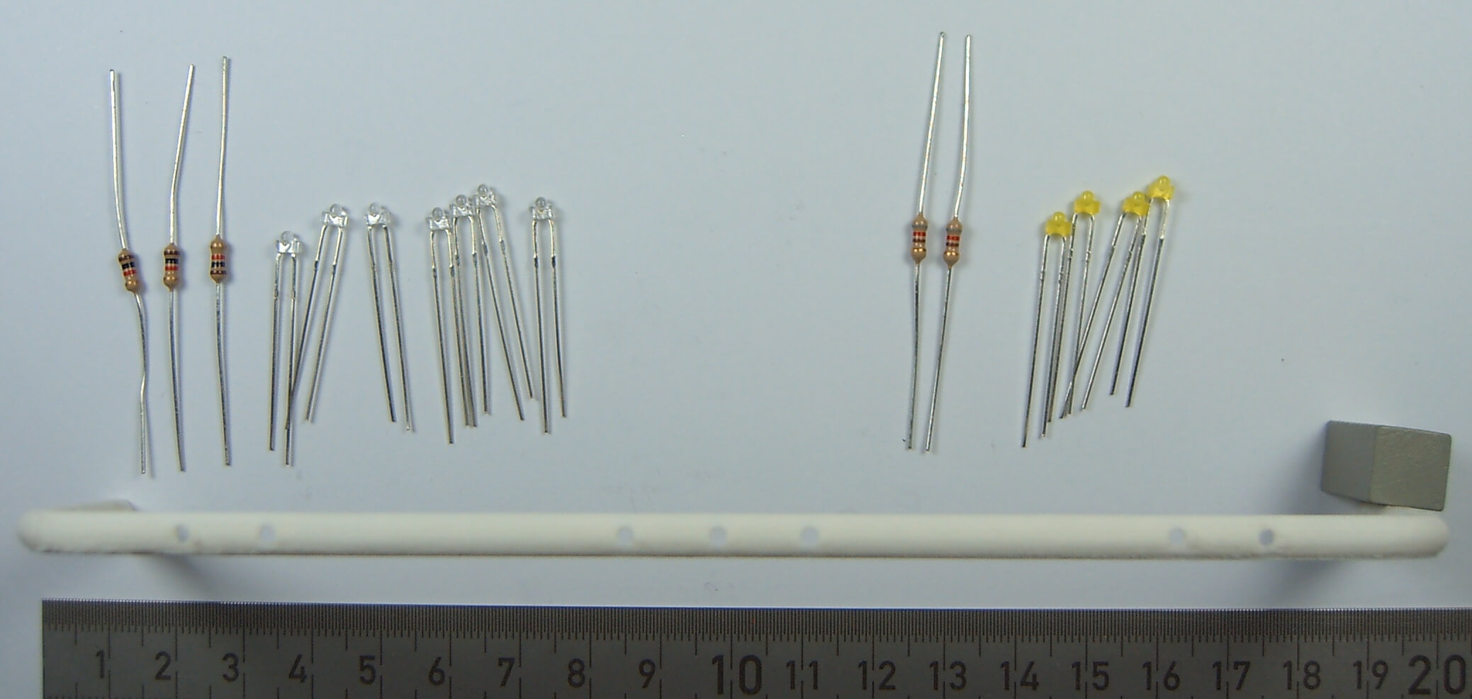 Die 1,8mm-LEDs werden von hinten in die LoBar geklebt und dann mit den Vorwiderständen verkabelt.