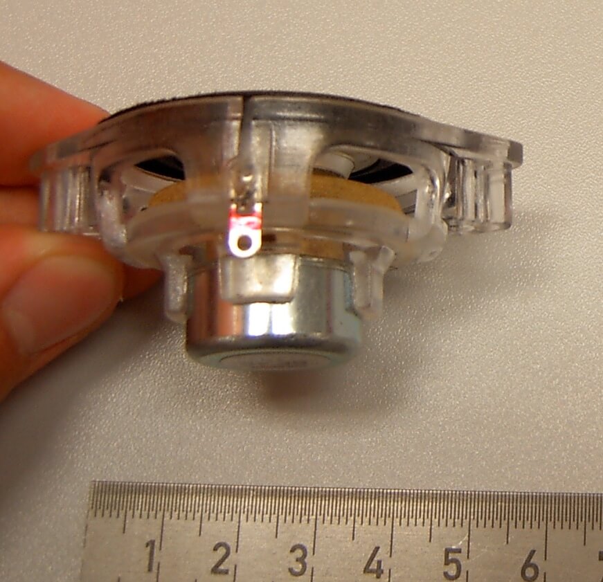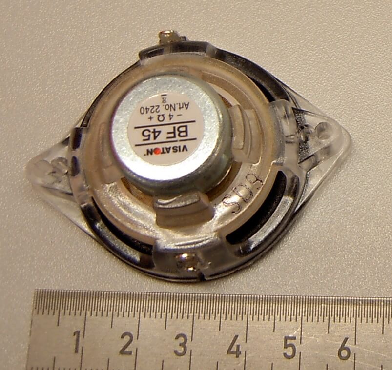 1x Miniatur-Lautsprecher Visaton 4 Ohm für 7,2V-Betrieb. 4/8 Watt. Durchmesser 45mm.