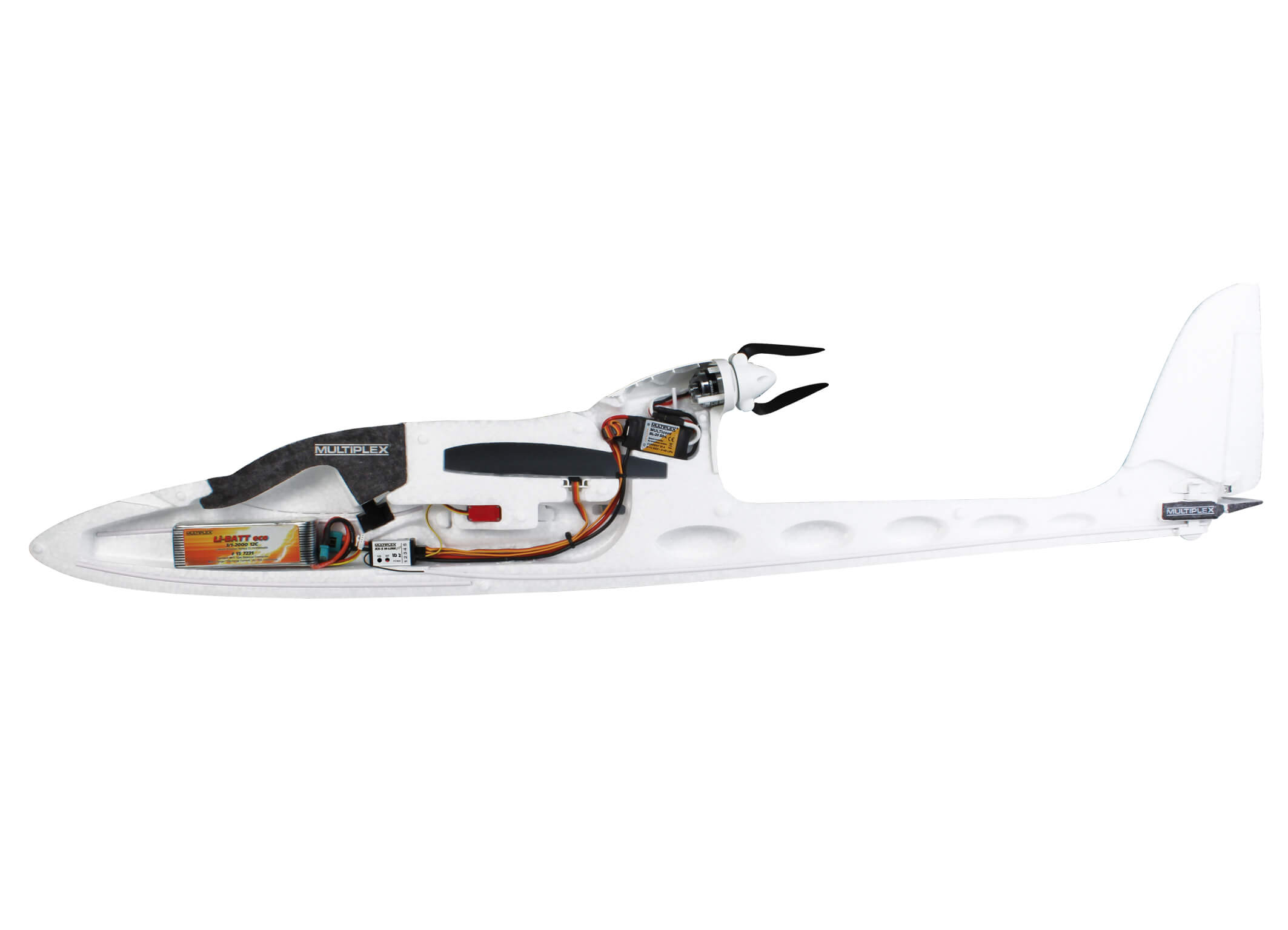 - Klapppropeller für weniger Luftwiderstand im Segelflug<br- Großer Laderaum - Platz für großen LiPo