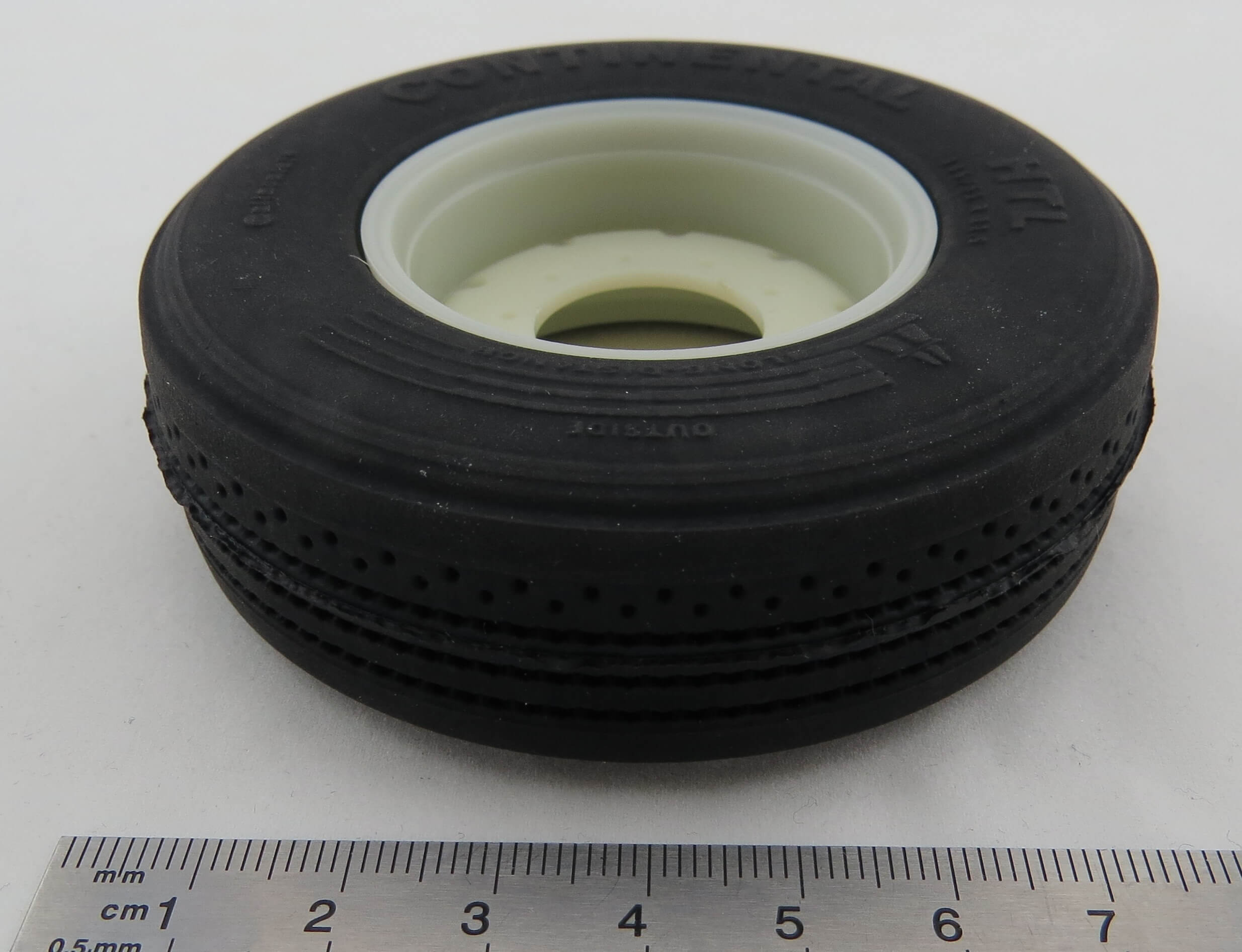 Passender Reifen: Artikel 10813, 12318, 12319 (Hohl-Reifen) und 4361 (läßt sich etwas schwerer montieren, hält aber hohe Belastungen aus).
