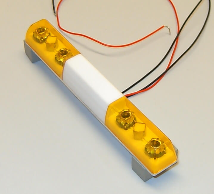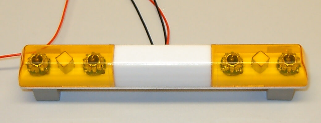 1x Rundumleuchtbalken, mit integrierter Elektronik u.SMD-LEDs, GELB, 4-12V, eckige Abdeckhaube, Maßstab passend zu Wedico und Tamiya. 3-Draht-Anschluß, H=14mm, B=15mm, L=117mm. 4-fach-Balken.